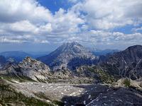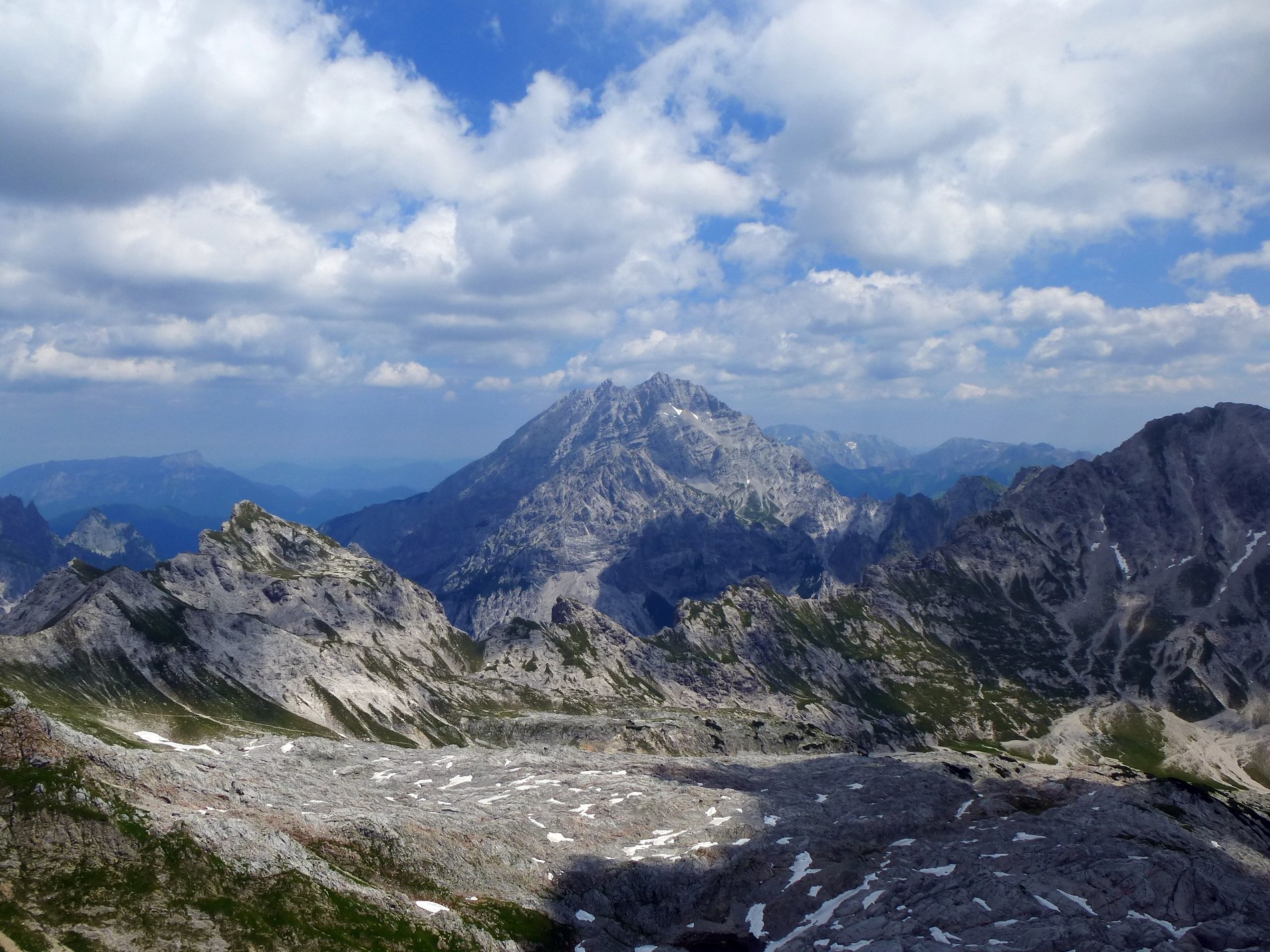 Wettermäßig hatten wir großes Glück, tags davor Regen, tags darauf durchwachsen. An diesem Tag Sonne pur und beste Sicht auf die fast allen bekannten und bestiegenen Gipfel wie Hohes Brett, Hoher Göll, Schneibstein und vor allem der Watzmann mit Frau und Kindern.