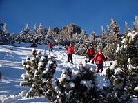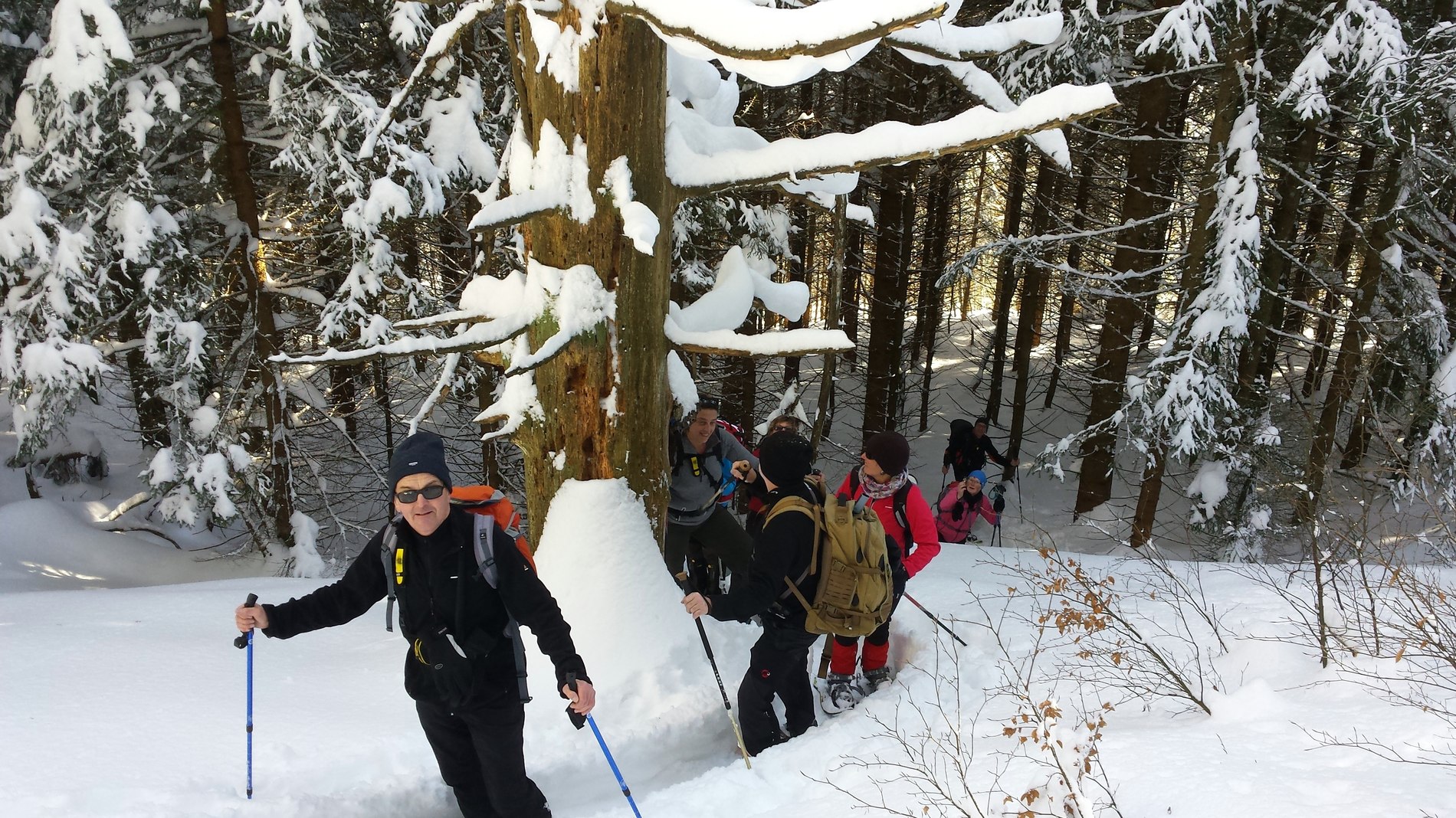 Einen frisch verschneiten Bergwald und endlich winterliches Wetter trafen wir bei dieser Unternehmung an. Dank Windstille und angenehmen Temperaturen gestaltete sich der Aufstieg sehr genussreich. Beim Abstieg konnte sich dank des weichen Neuschnees jeder gefahrlos an die Grenzen seiner Standfestigkeit herantasten, was die meisten auch taten. Gleich 22 Teilnehmer wollten diesen relativ einsamen Gipfel in einem relativ einsamen Gebiet kennenlernen.