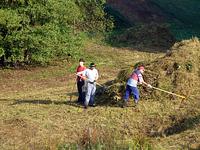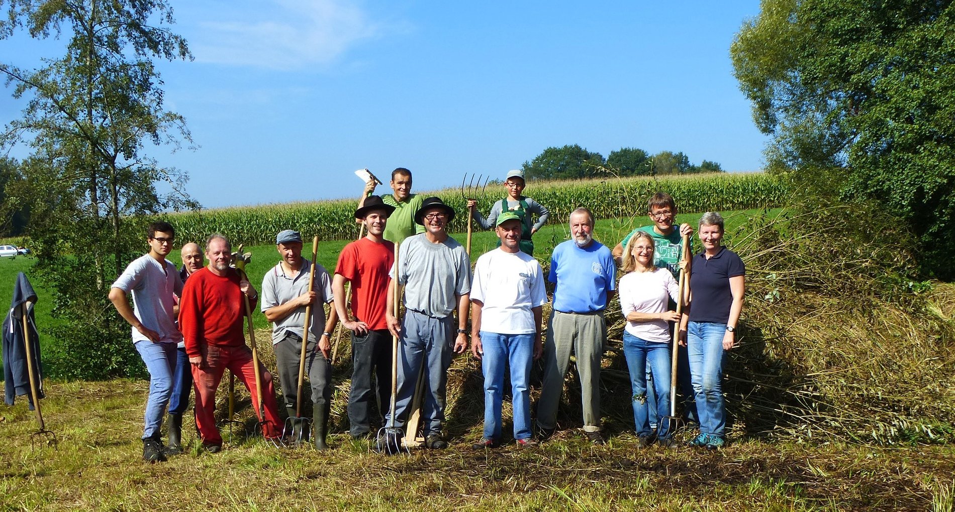 Am darauffolgenden Samstag wurde von zahlreichen freiwilligen Helfern das Schnittgut mit Rechen und Gabeln an den Rand der Feuchtfläche getragen und zum Abtransport gelagert. Alle waren erfreut, es auch dieses Jahr wieder geschafft zu haben, dieses Rückzugsgebiet der Natur für die Zukunft zu erhalten.