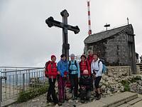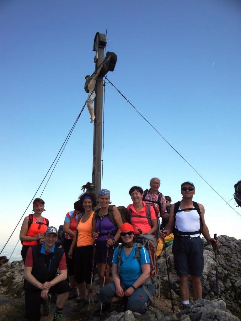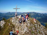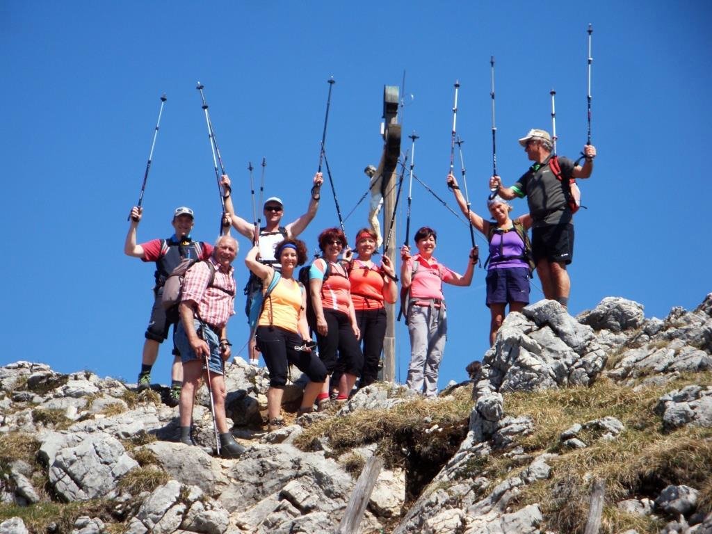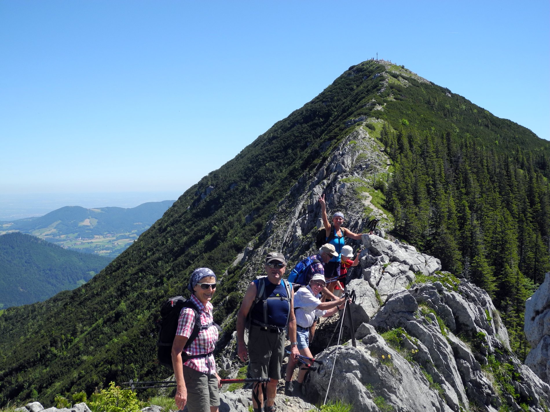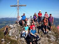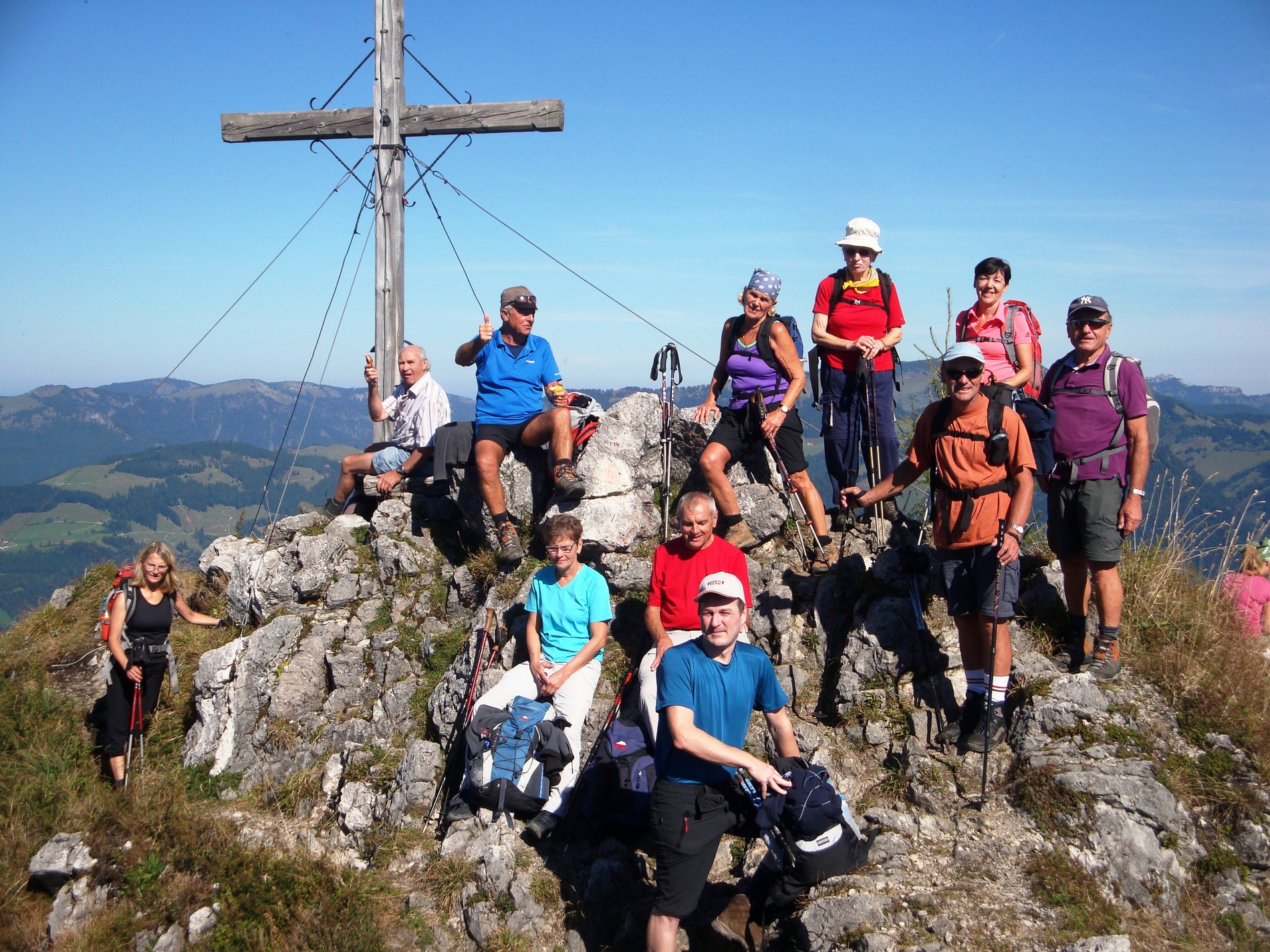 Ein kleiner Sommerabschied braucht auch eine kleinere Bergtour. So starteten wir auf der Steinbergalm (1000 m) und waren in zwei Stunden auf dem Gipfel. Ein kalter Wind trieb uns nach der Rundsicht ins warme Bergwirtshaus. Als Abstieg wählten wir den Weg über die Strohschneid, der gelegentlich die Hände als Hilfe brauchte. Der unmarkierte, teils steile und schmierige Nordweg forderte einige Arschrutscher und sorgte für Heiterkeit in der Gruppe. Beim Freilinger Wirt in Hirschhorn warteten schon die MTB-Radler von der Kranzhornrunde auf uns. Bei einem gemeinsamen Abendessen mit bester Stimmung ließen wir die Sommersaison ausklingen.