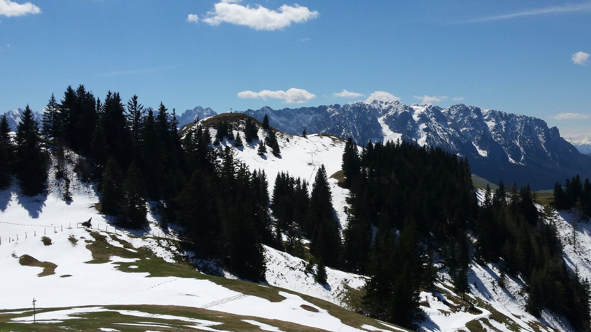 Wir ließen uns vom Wetter unseren Saisonstart nicht verderben, also verlegten wir unsere Tour um einen Tag vor. Bei bestem Bergwetter starteten wir von Walchsee über Wald und Wiesensteig auf den Brennkopf, immer mit grandiosem Blick auf die nordseitig noch verschneiten Kaisergipfel.