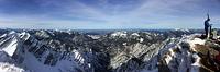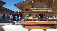 Nach kurzen Anlaufschwierigkeiten (Pieps-Batterien kann man schonen, wenn man den Pieps zwischen den Touren ausschaltet!) machten wir uns an die knapp 1000 Aufstiegshöhenmeter zum Gipfel, wo wir bei schönstem Sonnenschein die Gipfelbrotzeit genießen konnten. Nach der Abfahrt über den extrem buckeligen und zerfahrenen Gipfelhang, gar nicht mal so unanstrengend, kam die bewirtschaftete Hochalm grad recht zur Einkehr. Wer sich im Aufstieg und am Gipfel noch fragte, wo denn die ganzen Massen an Tourengehern geblieben waren, der wußte es spätestens jetzt. Aber letztendlich konnte jeder was zu Trinken ergattern und alle waren zufrieden nach einer schönen Skitour.