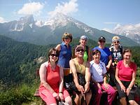 An diesem Tag hatten wir ganz besonderen Schutz von oben: Beim Anstieg auf den Grünstein von Königssee aus gab es wohl keinen, der nicht g’scheit geschwitzt hat – es war sehr heiß. Ein herrlicher Blick auf die GROSSEN Berchtesgadener hat uns den ganzen Tag begleitet. An der Grünsteinhütte sind wir noch ganz tapfer vorbeigegangen – noch wohlgestärkt von unserer Grünstein-Gipfelbrotzeit. Das ist uns bei der Kührointhütte aber nicht mehr gelungen. Nach gutem Essen und kühlen Getränken haben wir uns dann weiter auf den Weg gemacht. Über die Archenkanzel mit grandiosem Ausblick auf den Königssee ging es zum Rinnkendlsteig. Alle Teilnehmer haben diesen super gemeistert. Ein faszinierender Tiefblick zum Königssee und dann zur Wallfahrtskirche in Bartholomä hat uns dabei begleitet.