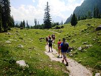 Den Abstieg wählten wir über den Normalweg Richtung Hochstaufen bis zur Padinger Alm, wo dem Meier Manne sein Freund, der Hias aus Ingolstadt (Bierbrauer), sein Auto geparkt hat, da wir sonst etwa vier km zur Staufen-Brücke hätten zurücklaufen müssen.