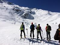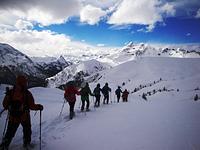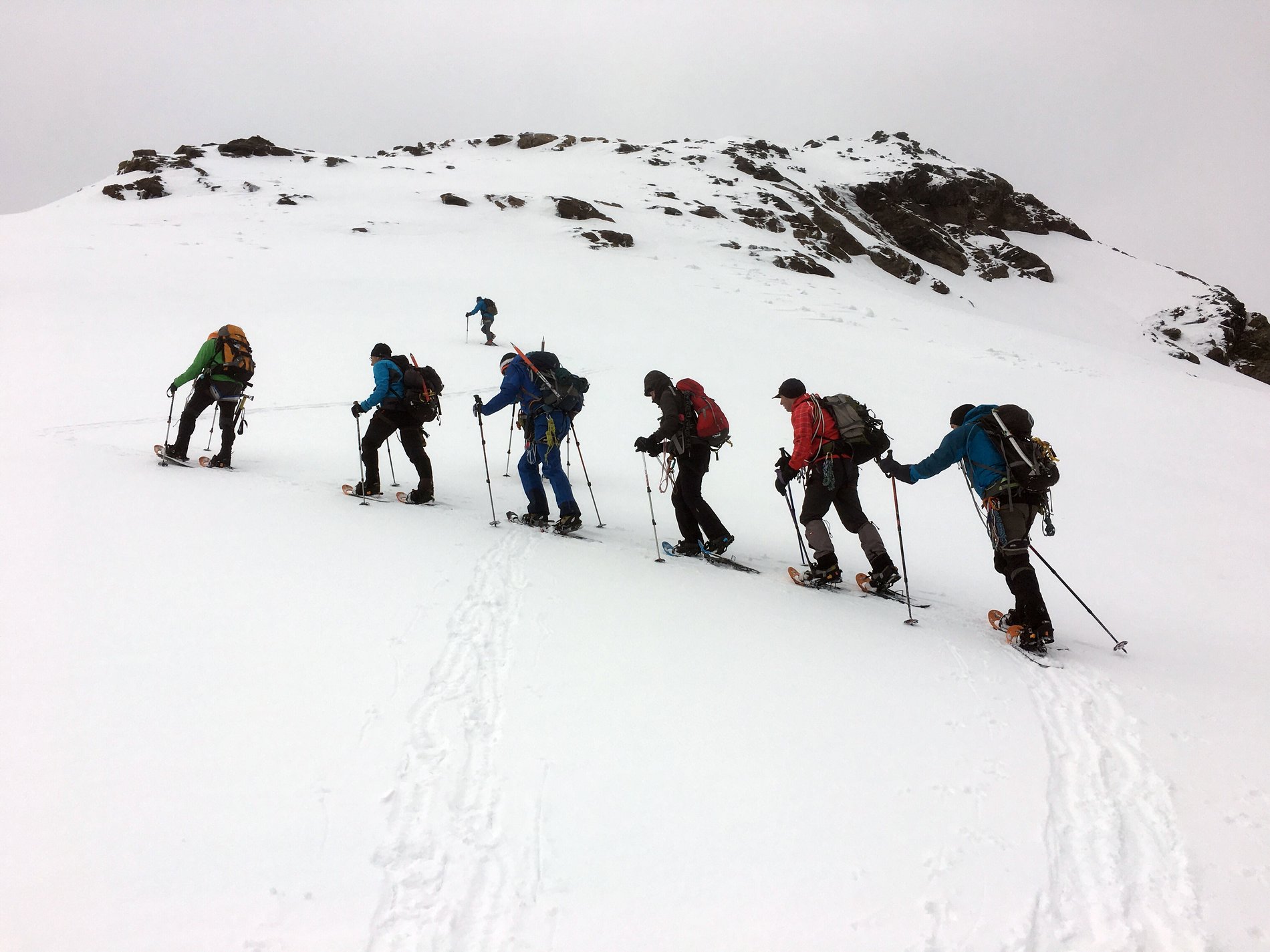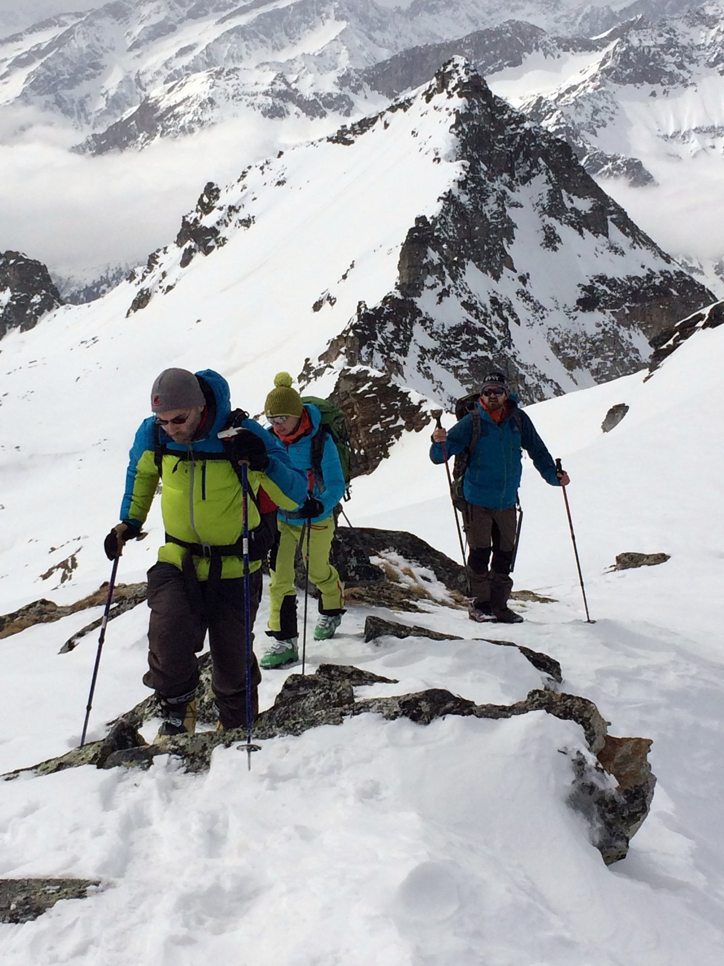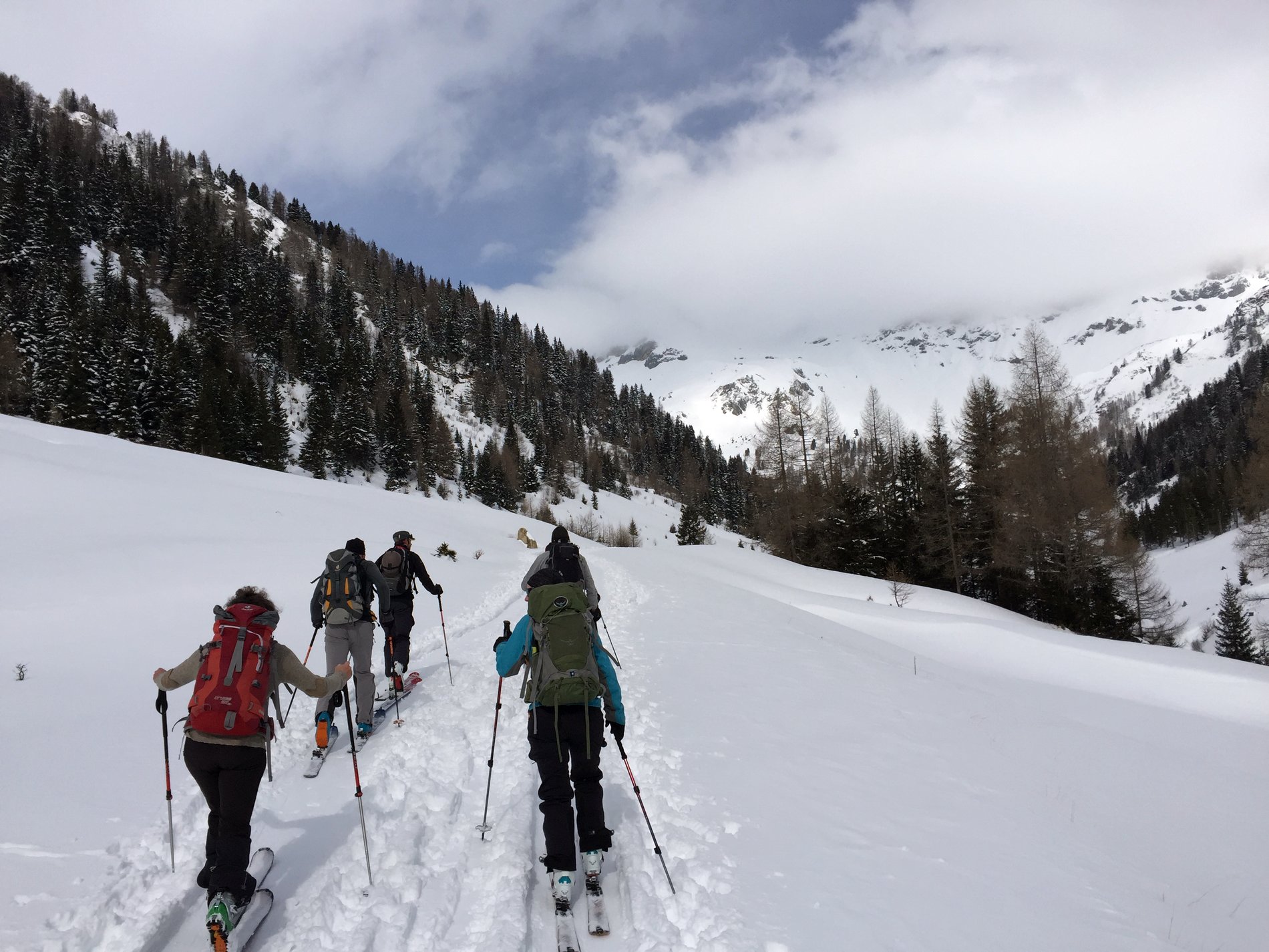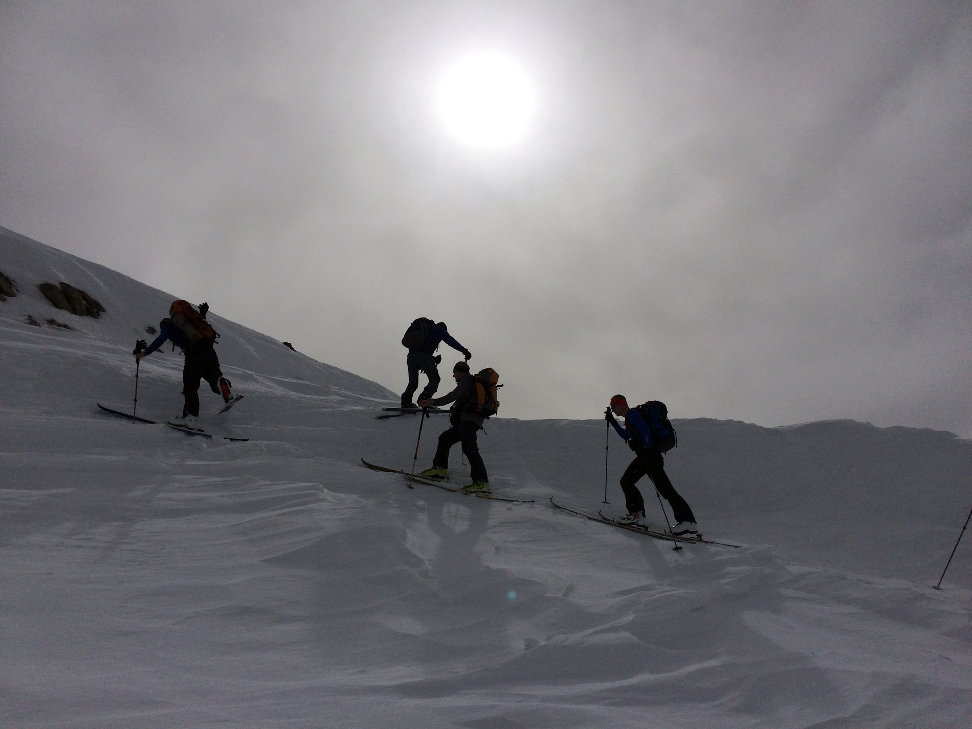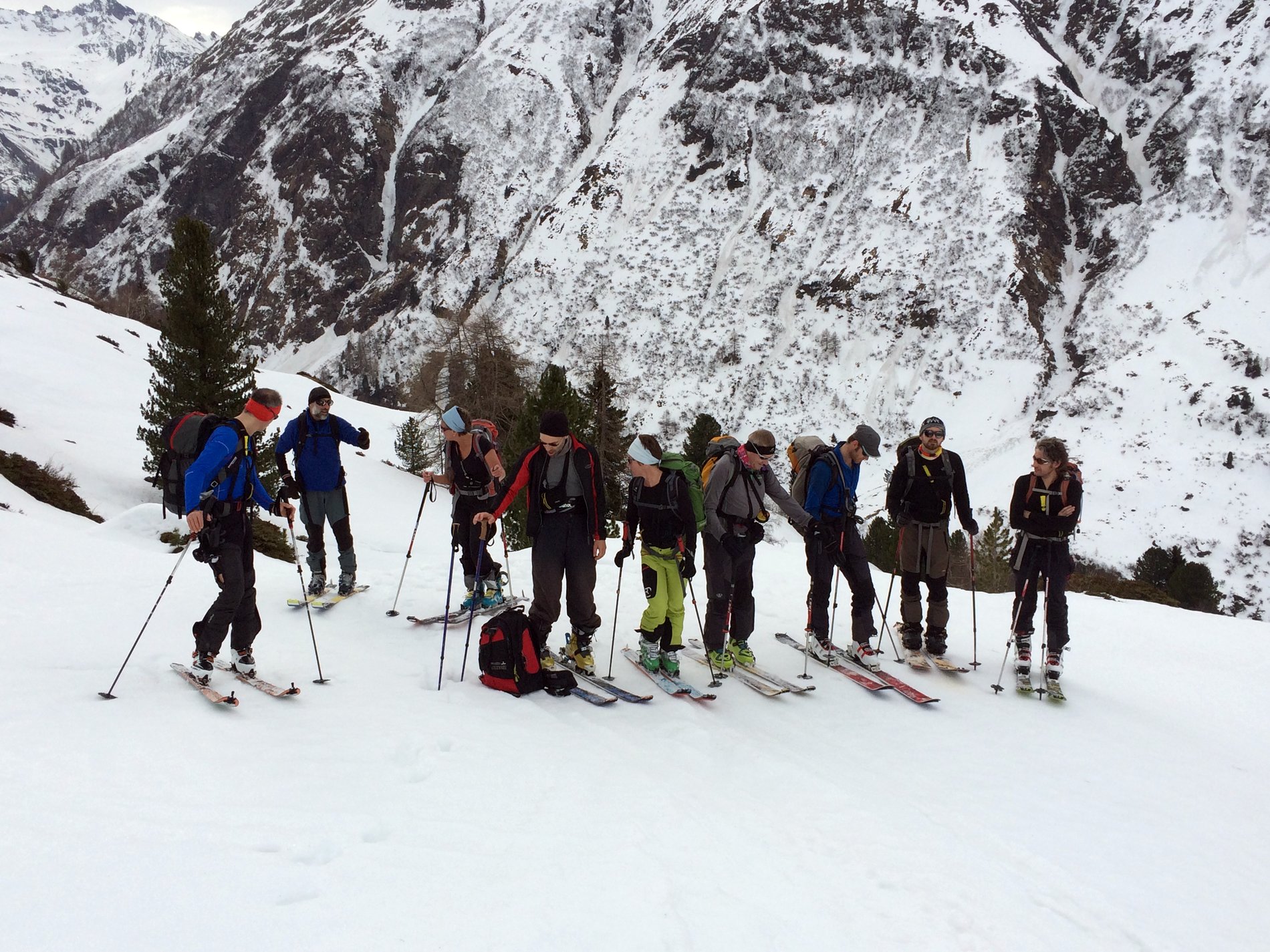 Von Lüsens starteten wir zu einer kleinen Sellraindurchquerung. Der Aufstieg führte uns über das Westfalenhaus auf den Winnebacher Weißkogel (3 185 m). Für die letzten Meter zum Gipfel benötigten wir noch Pickel und Steigeisen. Oben angekommen wurden wir mit einem grandiosen Panorama belohnt. Weiter führte uns die Route hinunter zur Winnebachseehütte, wo wir einen gemütlichen Hüttenabend verbrachten. Am frühen Morgen stiegen wir auf in Richtung Bachfallferner und weiter über ein steiles Kar (40°) zickzack hinauf. Oben ging es weiter mit geschulterten Schiern über einen Grat auf den Grüne-Tatzen-Ferner und weiter über diesen zum Gipfel des Hohen Seeblaskogel (3 235 m). Nach einer kurzen Gipfelrast fuhren wir über den Grüne-Tatzen-Ferner Richtung Westfalenhaus und weiter zurück nach Lüsens zum Auto ab.