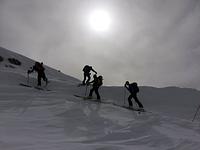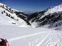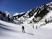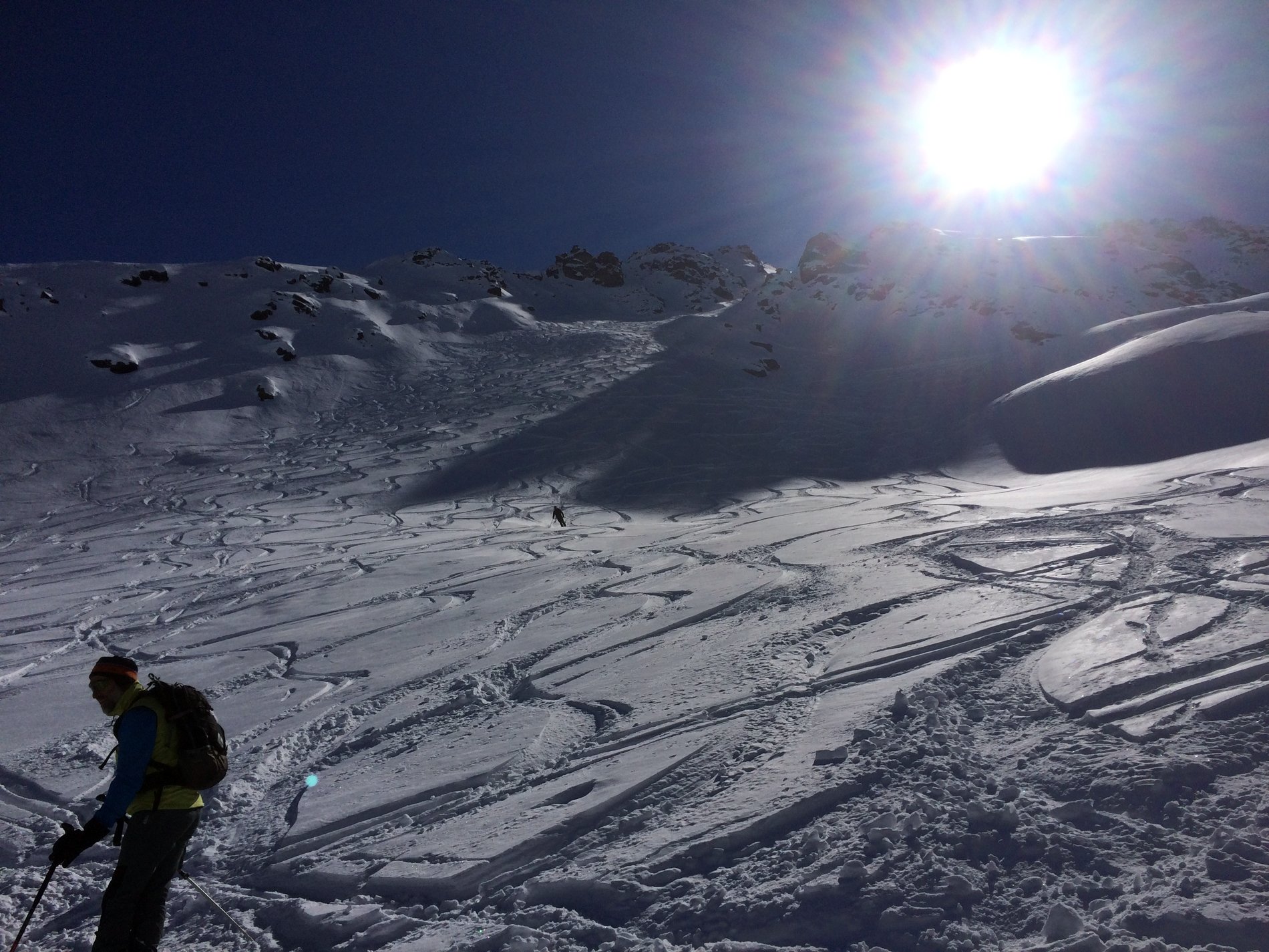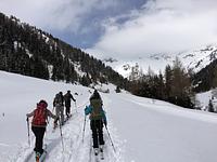 Fehlte nur noch eine gelungene Abfahrt. Und auch die war uns, dank bestem Schnee in den schattigen Nordhängen, vergönnt. Und der lange Tal-auße-Schieber gehört halt auch dazu.
