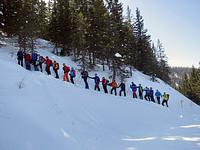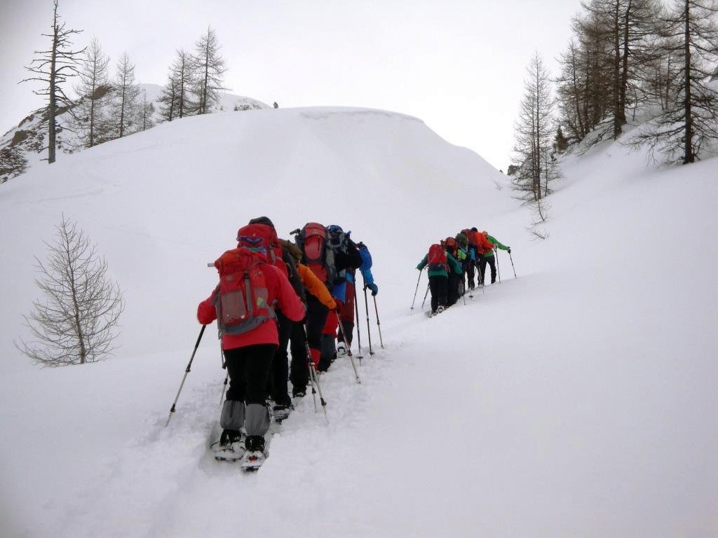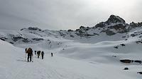 Skitourengeher und Schneeschuhwanderer zusammen im Gebirge. Ob so was gut gehen kann? Es geht, wie wir aus Erfahrung wissen. Bereits der erste Tag brachte ein schönes Erlebnis, als beide Gruppen am Gipfel der Labspitze (2 223 m) zusammentrafen. Die Skitourengeher hatten zu diesem Zeitpunkt allerdings auch schon die Aignerhöhe (2 104 m) bestiegen. Einen geselligen Abend und die Nacht verbrachten wir im Gasthof Mentenwirt in St. Michael im Lungau. Der nächste Tag erwartete uns mit einem Mix aus Sonne und leichtem Schneefall, was ganz besonders schöne Landschaftsbilder zauberte. Während die Skitourengeher die Balonspitze (2 485 m) bestiegen und sich bei der Abfahrt einige Schrammen im Skibelag zuzogen, begnügten sich die Schneeschuhgeher mit einer Anhöhe kurz vor dem Kempen in der Nähe des Mühlbachsees. So kam es, dass bei der Einkehr beim Kirchenwirt in Zederhaus an diesem Tage die Schneeschuhgeher die Nase vorn hatten. Letztendlich freuten sich alle Teilnehmer über gelungene zwei Wintertage, die trotz oder wegen der großen Gruppe sehr harmonisch und kameradschaftlich verliefen.