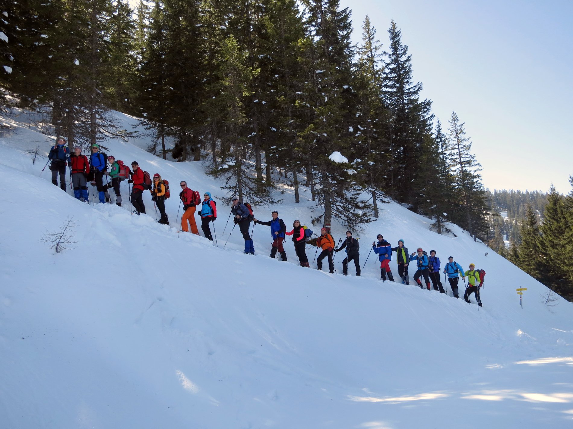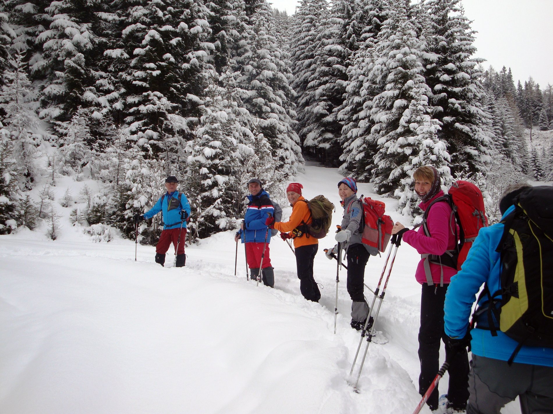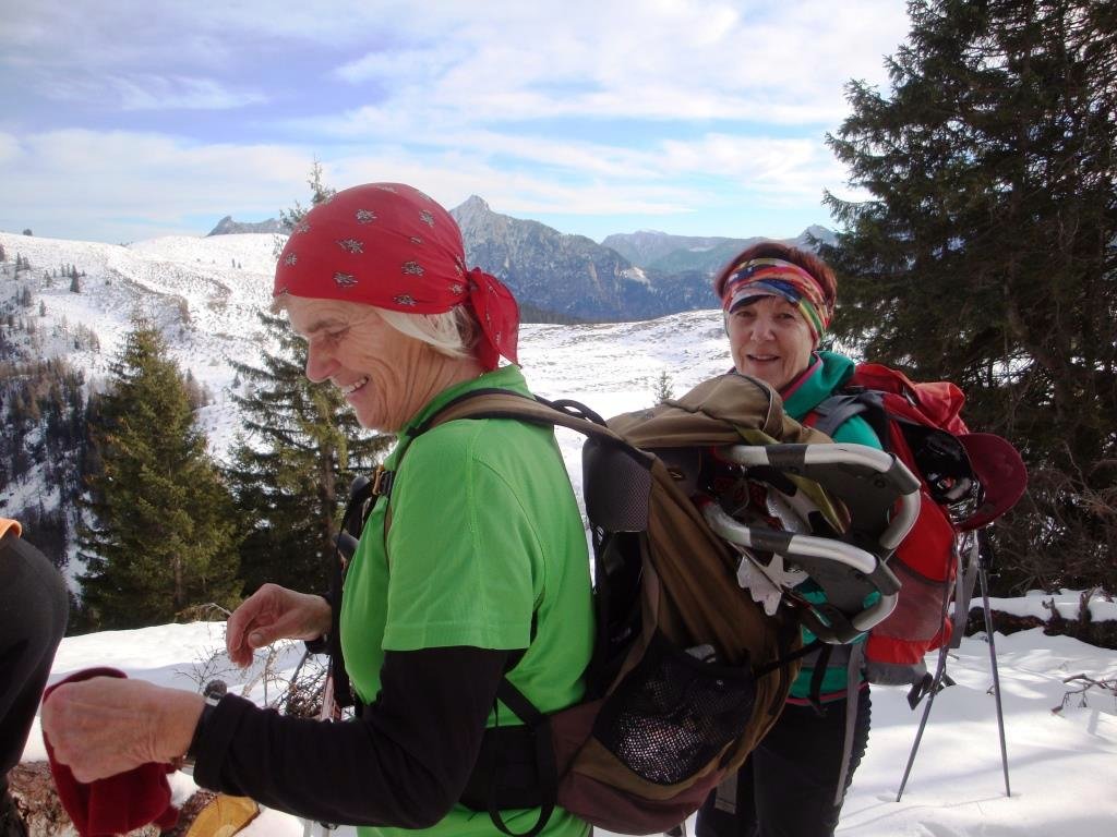 Der Winter ließ auf sich warten, so änderten wir unser Ziel und fuhren auf die Postalm. Dort war einigermaßen Schnee, so daß wir unsere neuen Sektions-Schneeschuhe austesten konnten.