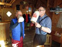 Als wir gerade unsere Füße mit einem kühlen Königsseebad verwöhnt haben, hat der Wettergott gemerkt, dass wir gut angekommen sind und dann den schon vorhergesagten Regen angestellt. Bei geräucherten Fischen und einem guten Schluck zum Trinken konnte uns der Regen nichts mehr anhaben.