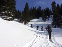 Über leicht verschneite Almwiesen wanderten wir gemütlich zum Wiesler Horn. Für den Anstieg zum Gipfel schonten wir unsere Schneeschuhe und schnallten diese auf den Rucksack. Beim Übergang Richtung Windkogel fanden wir doch noch einigen Tiefschnee, so daß wir noch zünftig querfeldein laufen konnten. Mit einer gemütlichen Einkehr in der Wiesler Hütte fand die Tour ihren Ausklang.