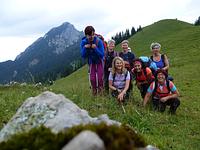 Der Wallfahrtsort Birkenstein war unser Ausgangspunkt. Bei herrlichem Wetter konnten wir die Aussicht bei unserer ersten Rast auf der noch nicht bewirtschafteten Bucher Alm genießen, bevor wir unsere Drei-Tausender-Gipfeltour starteten. Auf unserem ersten Gipfel, dem Bockstein, war noch nichts vom Getümmel eines Münchner Hausberges zu sehen. Ganz anders war dies auf dem Breitenstein. Der Dritte im Bunde war der Schweinsberg, den wir über einen steilen Aufstieg erreichten. Die Kesselalm kam dann grad zur rechten Zeit. Ein Besuch in der Wallfahrtskirche durfte natürlich nicht fehlen. Ein ausgefüllter Tag unter dem Motto „Genuß pur“.