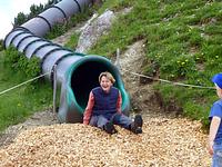 Mit der Erlebniswanderung im „Wald der Kinder“ hatten wir eine entspannte Familienunternehmung. Entspannend für die Kinder, weil eine Spiel- bzw. Entdeckerstation nach der anderen unseren Weg säumte und entspannend für die Eltern, weil das Motivieren der Kinder nicht erforderlich war, eher musste der Tatendrang eingebremst werden. Nach ca. drei Stunden Spielen, Entdecken und Wandern kamen wir an der Pettenfirsthütte an. Nachdem wir ausgiebig Brotzeit gemacht hatten, entschieden wir uns für den gleichen Abstiegsweg, den wir im Aufstieg gegangen sind, denn zu groß war das Verlangen der Kinder nach einigen Spielstationen: wie Speckstein, Rutsche-Fernrohr, Fuchsbau, Spinnennetz, Klettergitarre, etc.