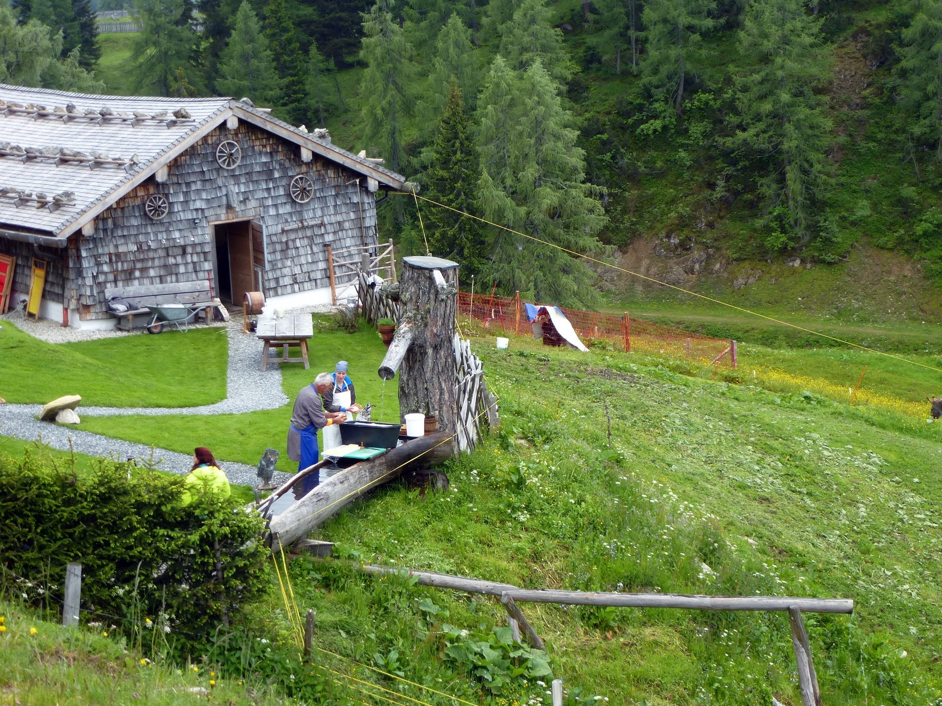 Viele Wege führen zur Taubenseehütte, aufgrund des wechselnden Wetters entschieden wir uns für den kürzesten, aber auch steilsten! Dies dürften die Kinderwagenlenker auch deutlich in den Wadeln gespürt haben. Den „frei“ laufenden Kindern machte der Anstieg weniger Probleme. Aber alle waren froh, als wir die Taubenseehütte erreicht haben. Das Essen durften wir noch genießen und schon drängte uns die Hüttenwirtin zum Abstieg, angeblich stand eine neue Regenwetterfront an. Diese ist unbemerkt an uns vorüber gezogen. Im Gegenteil! Die Wolken machten langsam der Aussicht Platz! Unter diesen Bedingungen ging es sich gleich viel besser und so dehnten wir kurzentschlossen die Tour noch ein wenig aus.