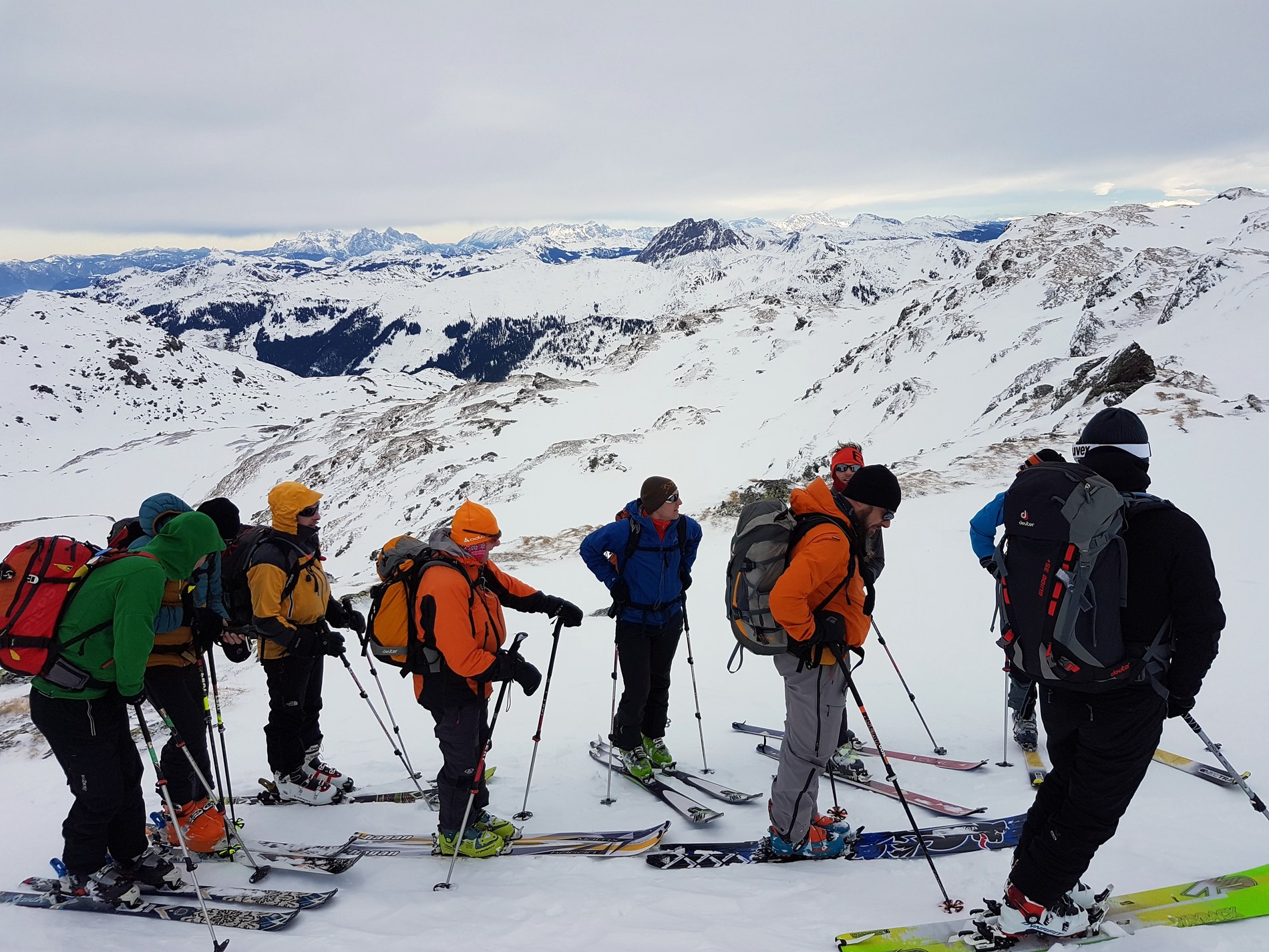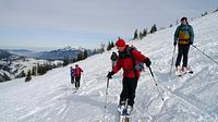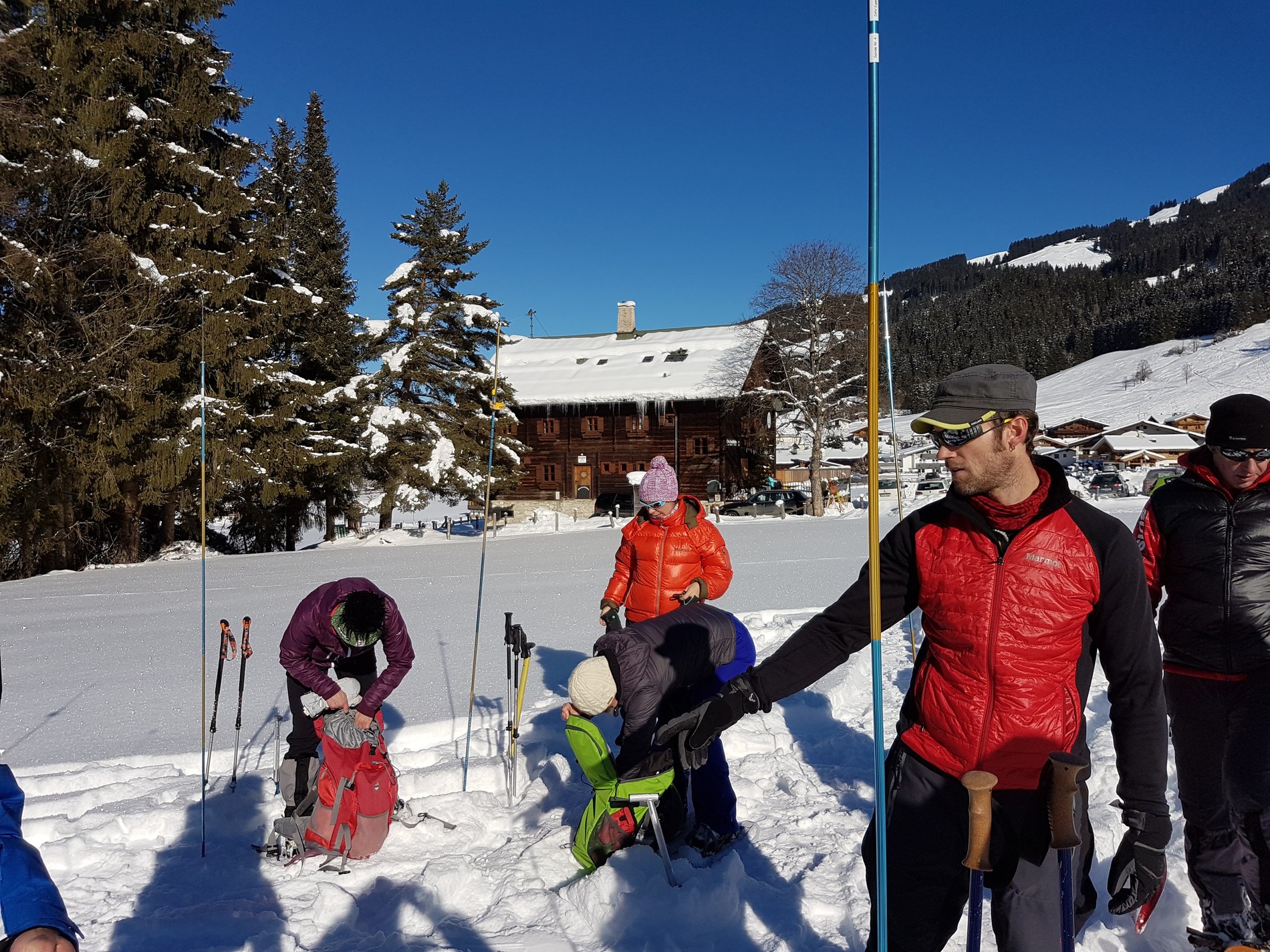 Bei traumhaftem Winterwetter starteten wir in zwei Gruppen zu den am Abend geplanten Zielen – Brechhorn (2032 m) und Floch (2057 m). Bei dieser Tour hatten alle gleich Gelegenheit, das erlernte Wissen zur Lawinenkunde ins Gelände zu übertragen.
