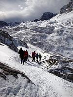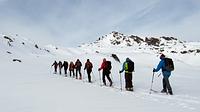 Nach kurzer Diskussion und Protest einiger Teilnehmer – anscheinend war es nicht jedem klar, dass man auf Skihochtour Anfang April sehr früh aufbrechen muss :-) – starteten wir um 4.00 Uhr Richtung Wildkarspitze (3073 m) und standen nach 1650 Hm und etwas Kletterei im 2. Schwierigkeitsgrad einige Stunden später am Gipfel. Die Abfahrt im allerbesten Firn – man sprach sogar von den besten Abfahrtsverhältnissen der Saison – hat jeden von uns das frühe Aufstehen schnell vergessen lassen.