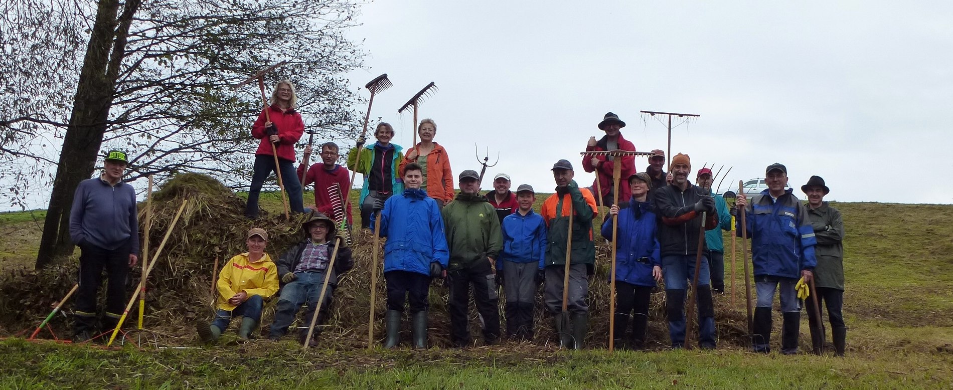 Gut gewachsen ist’s, sagten die fleißigen Mäher und machten sich ans Werk mit Balkenmäher und Motorsense. Am Samstag hatten die zahlreichen fleißigen Helfer jede Menge Arbeit, die große Menge an Schnittgut mit Rechen und Gabeln an den Rand der Feuchtfläche zu tragen und zum Abtransport auf große Haufen zu schichten. Alle waren erfreut, es auch dieses Jahr wieder geschafft zu haben, dieses Rückzugsgebiet der Natur für die Zukunft zu erhalten. Als Lohn für diese schweißtreibende Arbeit gab es zum Abschluß noch eine zünftige Brotzeit im Gasthof Freilinger in Hirschhorn.