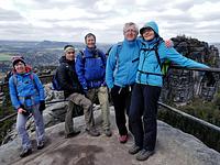 Warum nicht in der Zeit zwischen den Jahreszeiten einmal in eine ganz andere Richtung fahren und schon relativ früh in der Saison die Wanderschuhe schnüren. Immerhin heißt das Elbsandsteingebirge „Gebirge“ und sieht auch so aus, auch wenn die Gipfelhöhen kaum Rottaler Niveau überschreiten. Obwohl die Wetterprognose für unsere Tage nicht gerade verheißungsvoll war, fuhren wir optimistisch gestimmt in Richtung Dresden. Und unsere Stimmung sollte uns Recht geben. Jeden Tag waren wir von morgens bis abends in dieser zauberhaften Landschaft unterwegs und bewunderten die senkrechten Felsnadeln, Höhlen und Tiefblicke. Mit Häntzschelstiege und Zwillingsstiege „bezwangen“ wir auch die bekanntesten und schwierigsten Steiganlagen der Region. Pfaffenstein, Hinteres Raubschloß, Affensteine, Carolafelsen, Frienstein, Kuhstall, Hohe Liebe, Schrammsteinaussicht usw. hießen unsere Ziele. Mit der Mittelndorfer Mühle im schönen Kirnitzschtal als Quartier hatten wir einen guten Griff getan, wo wir täglich den etwas eigenwilligen Wirt genießen konnten. Eine Unternehmung, die uns wieder zeigte, dass es auch außerhalb der Alpen wunderschöne Winkel zu entdecken gibt.