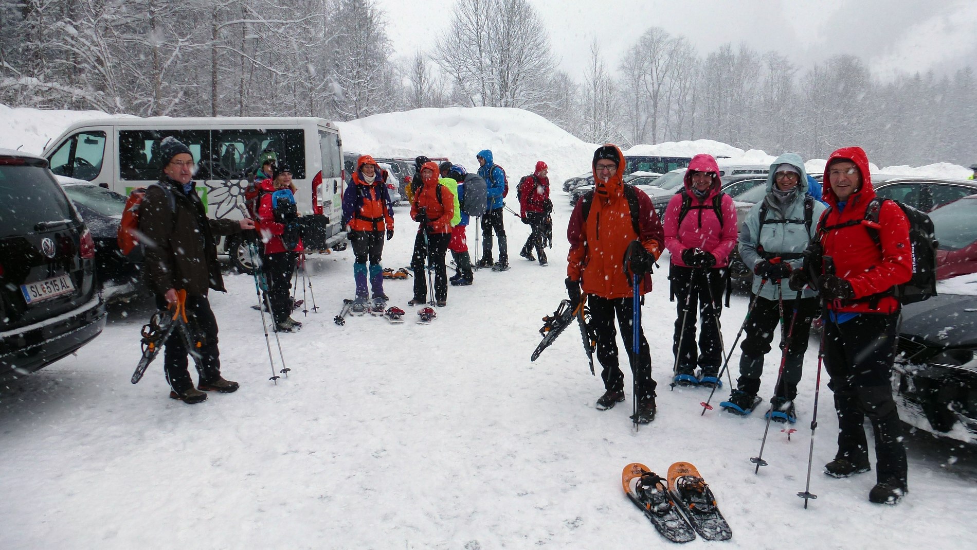 Auch der zweite Versuch drohte fast zu Scheitern. Schließlich gab es während der Woche bereits ergiebige Schneefälle. Die Wetterprognosen waren allerdings gut und so wurde die vorgesehene Herbstwanderung einfach in die erste Schneeschuhwanderung umgewandelt.