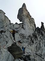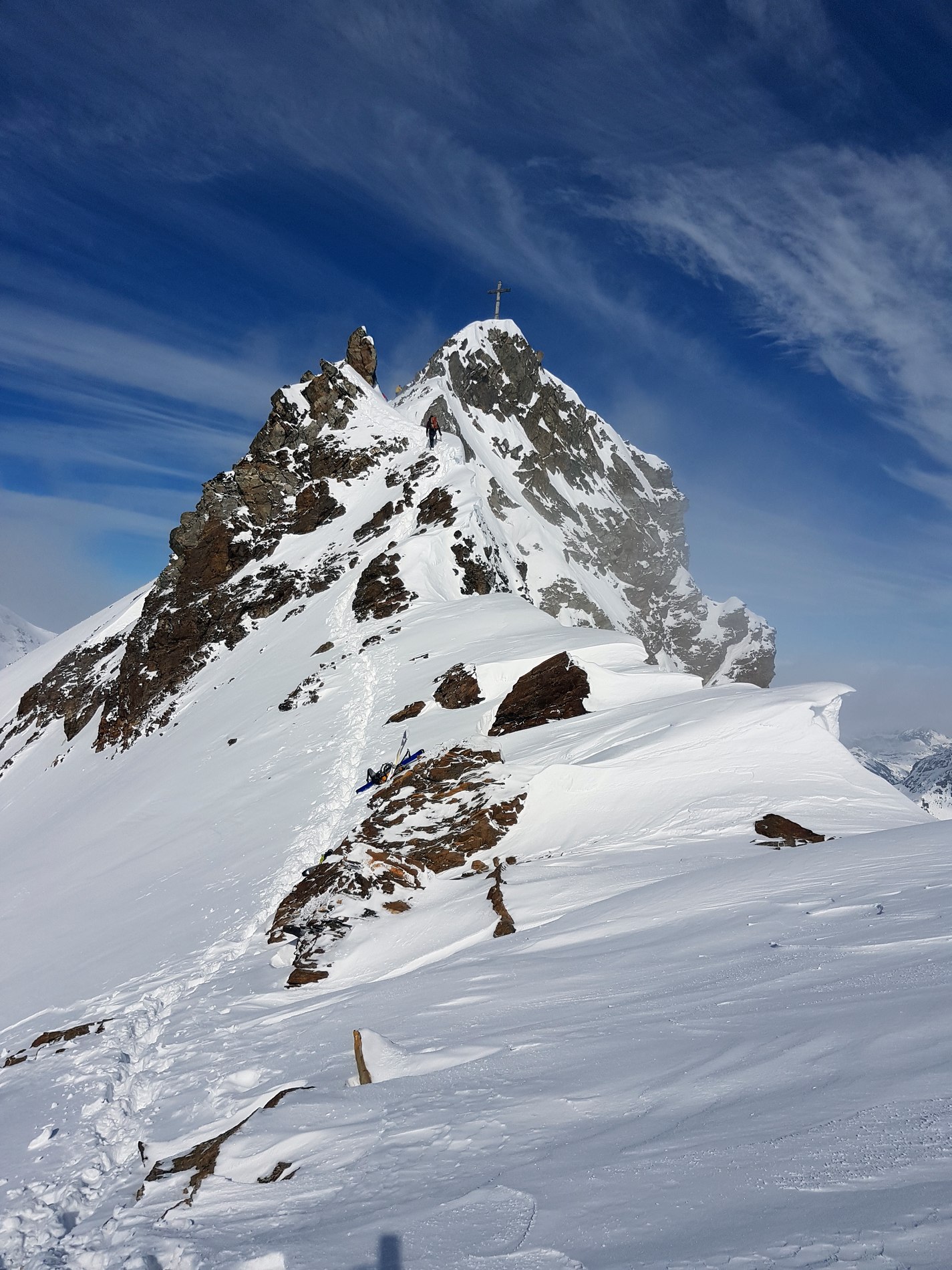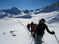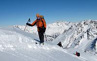 Den krönenden Abschluss unserer Silvretta-Durchquerung brachte uns das Silvrettahorn (3244 m), wo wir am Gipfelaufbau ein Geländerseil anbrachten. Nach einer schönen Abfahrt über den Ochsentaler Gletscher fuhren wir über die Wiesbadener Hütte zur Bielerhöhe und weiter über die im Winter gesperrte Silvretta-Hochalpenstraße zurück in die Zivilisation.
