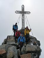 Laut Wegweiser sollten wir am nächsten Tag von der Villacher Hütte zur Hochalmspitze 3½ Stunden benötigen. Diese Zeit toppten wir natürlich und brauchten fast doppelt so lang! Nach Rücksprache mit der ÖAV-Sektion Villach ist diese Zeitangabe an das Skitourengehen gemessen, da dieser Weg im Sommer fast nie begangen wird. Etliche Kletterstellen, nur leichte Wegspuren, ein unberührter Hochalmkees und ein riesiger Bergschrund forderten einiges an Anstrengungen. Wie so oft waren die letzten Höhenmeter die härtesten für uns (bis auf wenige Ausnahmen)! An und für sich hatten wir ideale Wetterbedingung, nur leider blieb die Fernsicht vom Gipfel für uns verborgen. Stolz, die Tauernkönigin und damit die höchste Erhebung der Ankogelgruppe bestiegen zu haben, machten wir uns an den Abstieg. Über die Preimlscharte (3133 m) und den Großelendkees (Die Teilnehmer wissen, warum dieser so heißt!) ging es über felsdurchsetztes Gelände und über eine schier endlos wirkende Seitenmoräne zur Osnabrücker Hütte (2026 m). Gegen 19.30 Uhr kamen wir nach einer tagfüllenden Aktivität in der Hütte an. Und nur das wahnsinnig gute Hirschgulasch vermochte wieder ein Lächeln in unser Gesicht zu zaubern!