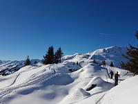 Dieser belohnte uns mit einem traumhaften Panorama und einer tollen Abfahrt bei überraschend guten Schneeverhältnissen. Nach einem kurzen Gegenanstieg fuhren wir runter zum Gasthaus Wegscheid, wo wir das Wochenende gemütlich ausklingen ließen.