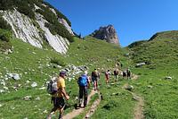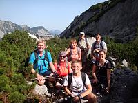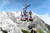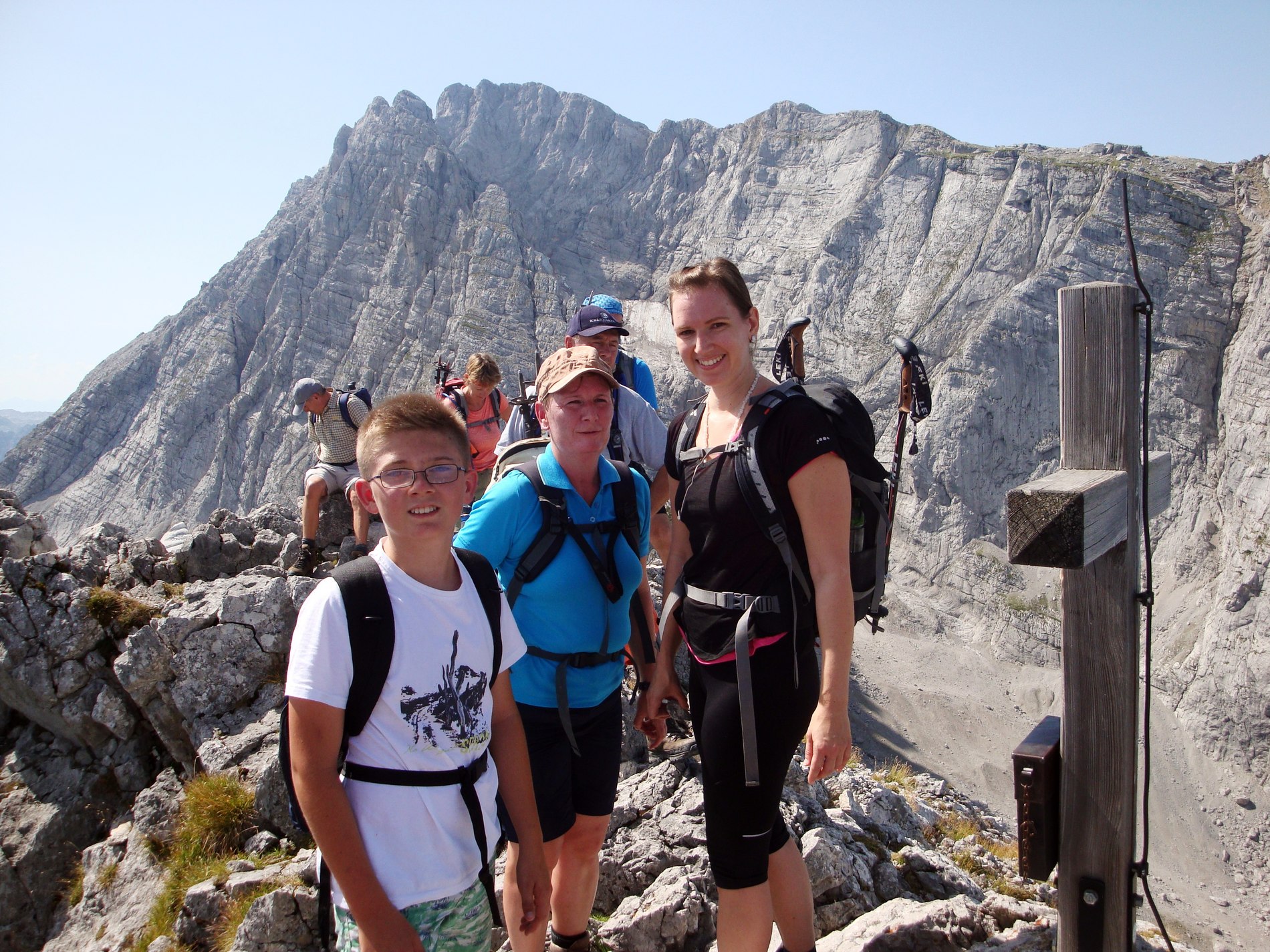 Herrliches Bergwetter, nicht zu heiß und doch schön warm, es geht nicht besser. Auch hat sich für diesen Tag eine super starke Gruppe zusammengefunden, mit der wir die Schärtenspitze „überschreiten“ konnten, besser gesagt, den interessanten und langen Abstieg über die Eisbodenscharte wählen konnten. Trittsicherheit und Schwindelfreiheit wurde sowohl im Aufstieg, wie im Abstieg abverlangt. Irgendwie war dann doch jeder froh, als wir an der Schärtenalm angekommen sind – unser Einkehrziel für diesen schönen Bergtag.