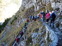 Den bereits 1929 eröffneten Naturfreundesteig wählten wir für unseren Aufstieg. Der Südwest-Grat führt listig durch die schroffen Westwände empor. Zum Teil über exponierte Bänder in sehr steilen grasbewachsenen Felsspornen, durch den Hochwald führte der Weg. Durch steile Felsrinnen und zuletzt durch ein großartiges Felsentor erreichten wir das Traunsteinhaus. Die grandiosen Tiefblicke auf den See gaben der Tour einen zusätzlichen Reiz. Bevor wir den Rückweg antraten, gönnten wir uns eine ausgiebige Pause auf der Gmundener Hütte. Der Hernler-Steig, der ganz in der Nähe der Hütte beginnt, bot sich für die interessante Überschreitung auf Klettersteigen an.