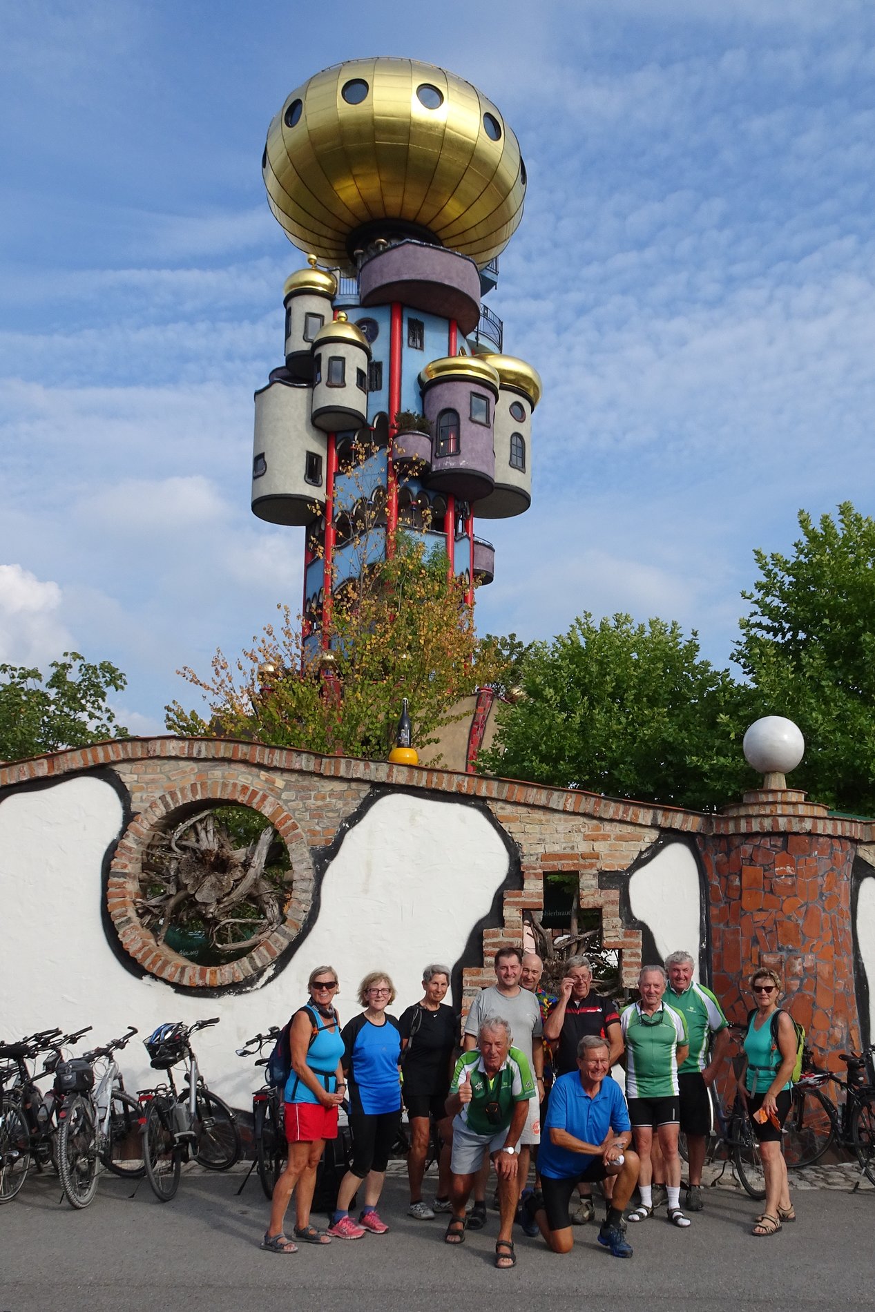 Wir starteten diese Rundtour in Abensberg und radelten auf Nebenstraßen vorbei an Hopfenfelder zum Kloster Weltenburg an der Donau. Von dort ging es per Schiff durch den romantischen Donaudurchbruch nach Kehlheim. Wieder auf dem Radl, im Schatten der Befreiungshalle wechselten wir auf den Altmühlradweg. Gut, daß wir unter der Woche unterwegs waren, so hielten sich die Radfahrer in Grenzen auf diesem sehr beliebten Weg. Vorbei an schönen Orten wie Essing oder Prunn mit seiner exponierten Burg war Riedenburg das nächste Ziel. Hier wechselten wir ins Wambachtal und folgten dem naturbelassenen Flüsschen Wambach nach Hexenagger und dann über mehrere Hügel an die Donau. Mit der Fähre setzten wir über und radelten an Hopfenfelder vorbei nach Abensberg. Im Biergarten des Kuchelbauer Hundertwasserturms endete der interessante Radltag.