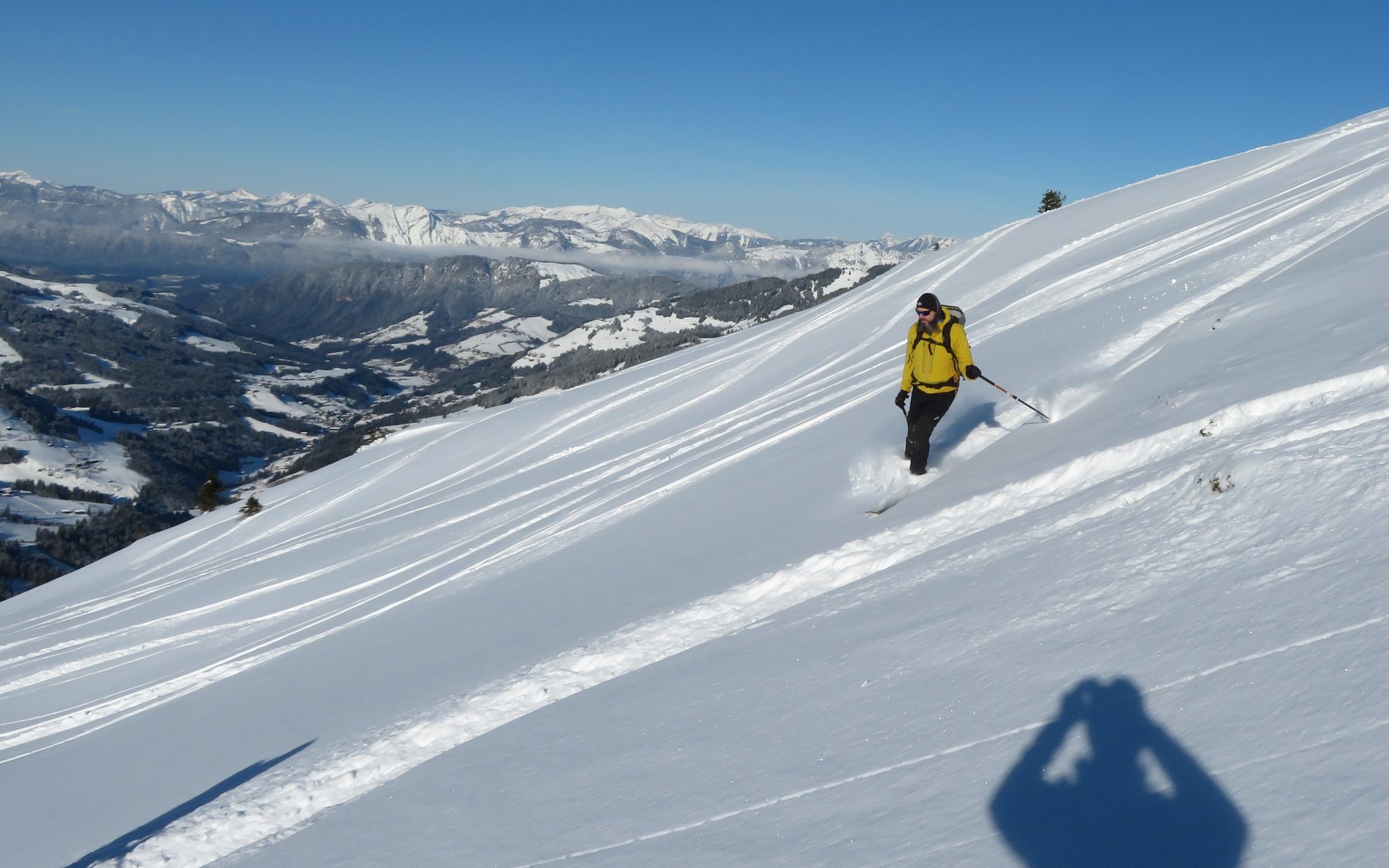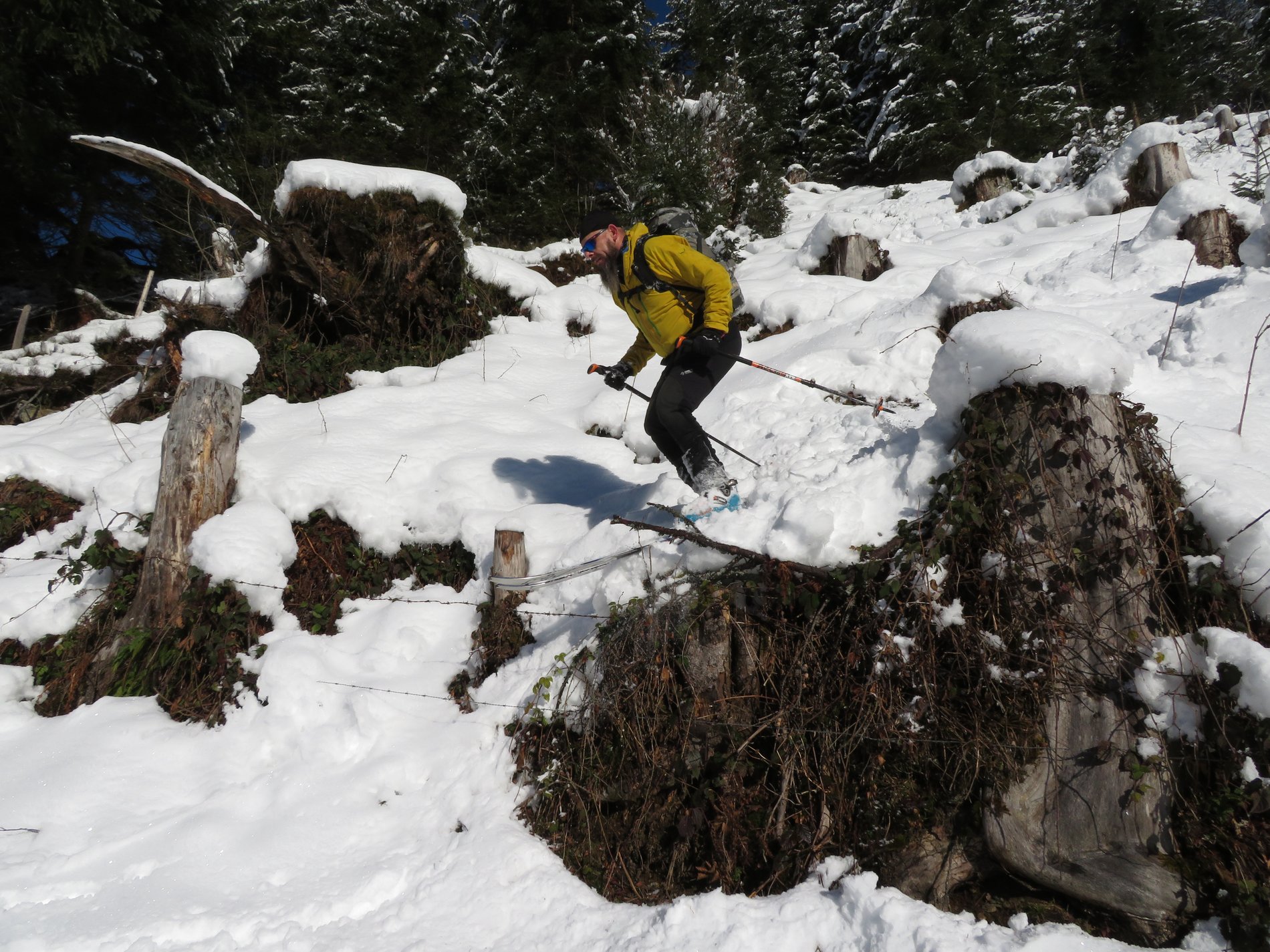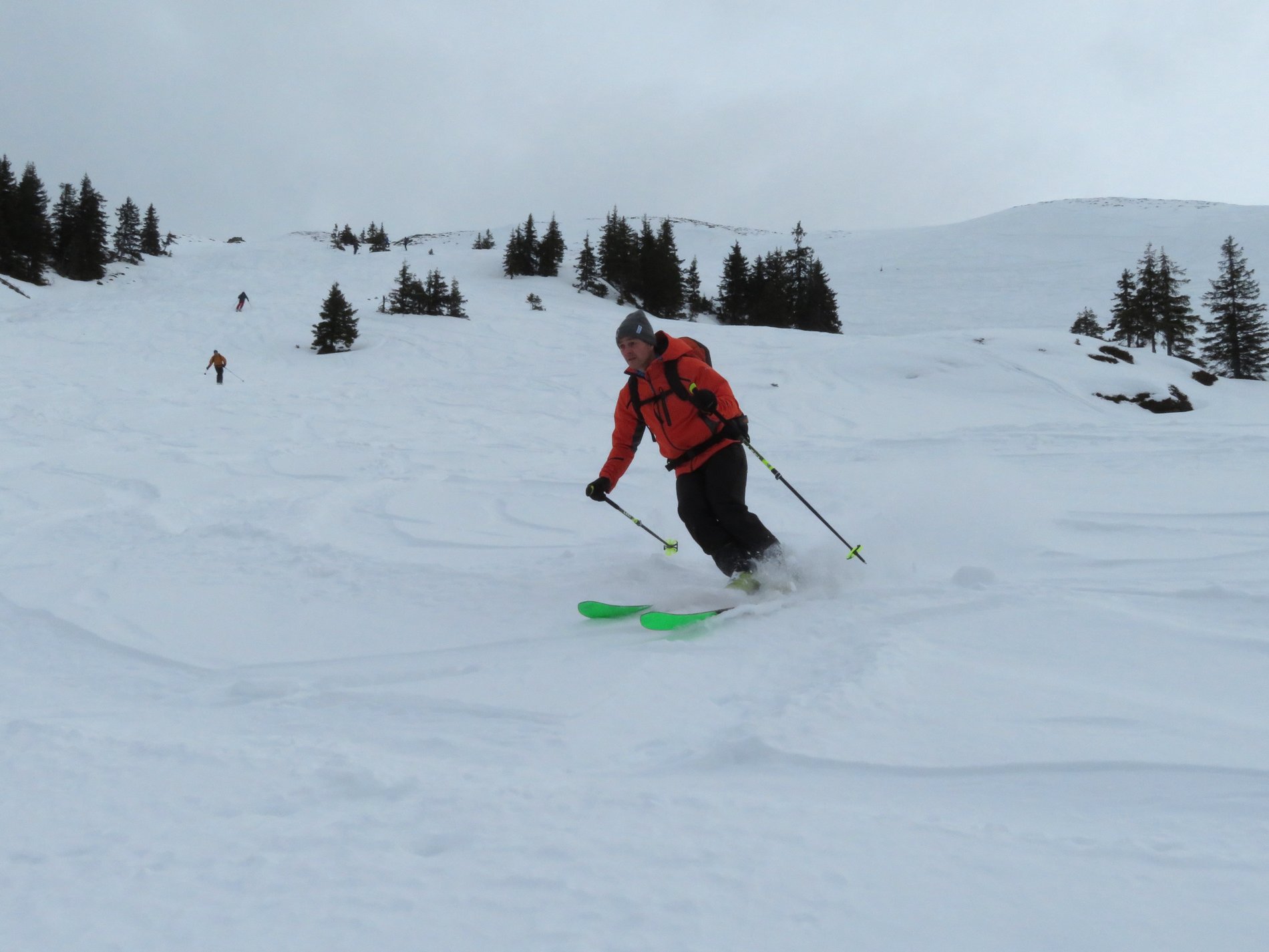 Das mit dem Schnee an Weihnachten war wie auch die letzten Jahre nicht ganz so einfach. Am Ersatztermin haben wir uns für den Breiteggern als Ziel entschieden. Der erhöhte Ausgangspunkt der Schönangeralm war genau richtig. Im unteren Teil mußten wir durch einen steinigen Waldgürtel, der lies für die Abfahrt nichts gutes erahnen. Aber sobald wir diesen durchstiegen hatten, erwarteten uns größtenteils freie unverspurte Hänge. Da machte der Anstieg richtig Spaß. Nach einer kurzen Gipfelrast machten wir uns an die Abfahrt, welch eine Freude. Natürlich mußten wir auch wieder durch den Waldgürtel. Aber das war nach der Einkehr in der Schönangeralm längst wieder vergessen.
