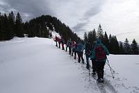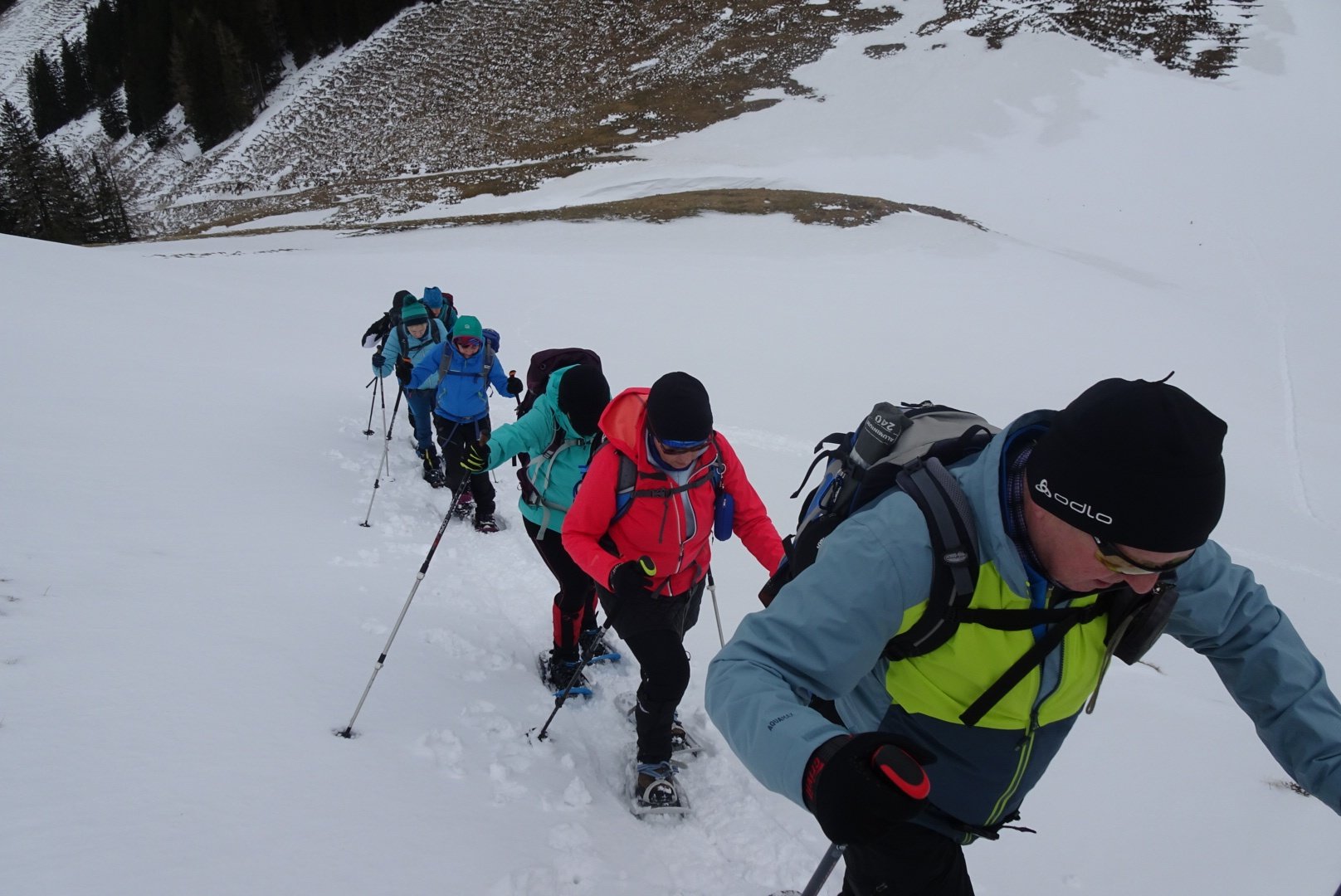 Ausgangspunkt unserer Schneeschuhtour war der Waldparkplatz am Tatzelwurm. Der winterlich verschneite Weg führte uns über die Schoißeralm. Von hier aus gab es schon einige gute Ausblicke auf den östlichen Alpenraum sowie einige Nachbarhügelchen zu genießen. Über einen kurzen, steilen Aufschwung und eine kurze Querung erreichten wir weitläufiges Gelände, bevor der steile Gipfelanstieg begann. Leider konnten wir den Rundumblick nicht lange genießen, da es bei stürmischem Wind ungemütlich war. Eine kleine Rast legten wir dann windgeschützt auf der Baumoosalm ein. Entlang des Baumoosbaches ging es dann wieder zum Ausgangspunkt zurück. Bevor es wieder nach Eggenfelden ging konnten wir uns im urigen Bergasthof Buchau in Oberaudorf stärken.