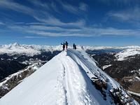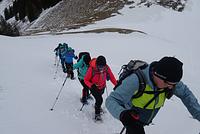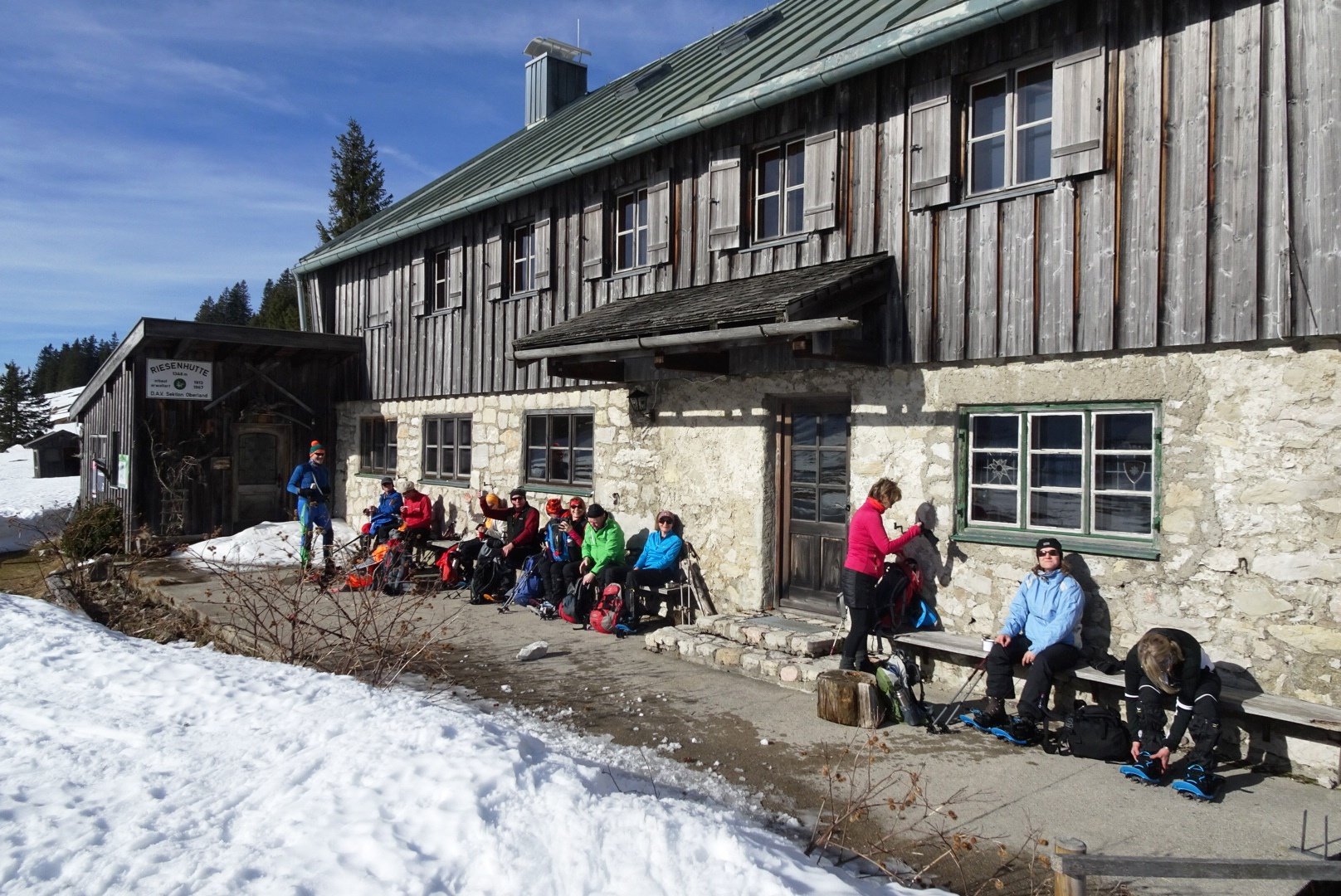 Nach dem obligatorischen Piepsertest teilten wir die Teilnehmer in zwei Gruppen auf, danke an Walter für die Führung der zweiten Gruppe. Über leicht verschneite Almwiesen wanderten wir gemütlich zum Wiesler Horn. Am Gipfel genossen wir den Blick zum Wolfgangsee, Schafberg und die umliegenden Salzkammergutberge. Beim Übergang Richtung Windkogel fanden wir doch noch einigen Tiefschnee so das wir noch zünftig querfeldein laufen konnten. Mit einer gemütlichen Einkehr auf der Terrasse der Wiesler Hütte fand die Tour ihren Ausklang.