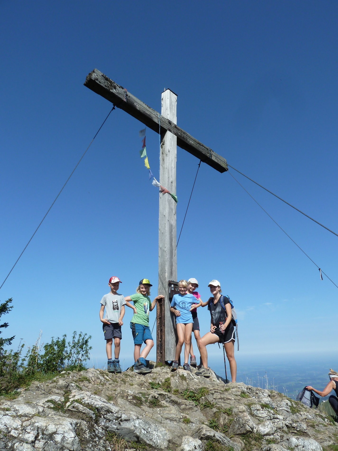 Hurra, nach der Pandemiepause durften wir wieder ins Gebirge! Nur leider dachten alle so, dementsprechend überlaufen waren die bayerischen Gipfel. Aus diesem Grund suchten wir uns ein weniger frequentiertes Ziel aus. Das Wetterkreuz, bei Reit im Winkel, bot sich ideal dafür an. Gleich hinter der Ortschaft begann ein schmaler und knackiger Pfad, der bei den Kindern sehr gut ankam. Nach 1,5 Stunden hatten wir die 400 Höhenmeter absolviert und standen auf den Gipfel. Die Aussicht war gigantisch, von oben konnten wir in Vogelperspektive auf Reit im Winkel schauen. Zudem war ein Gipfelpanorama mit Watzmann, Unterberghorn und Kaiser zu sehen. Nach einer Gipfelbrotzeit und den Gipfelfoto wählten wir den Abstiegsweg in Richtung Hutzenalm. An einer Einkehr war hier leider nicht zu denken, es war einfach zu viel los. Somit ging’s über Birnbach nach Reit im Winkel zurück, wo wir uns einen gemütlichen Biergarten suchten.