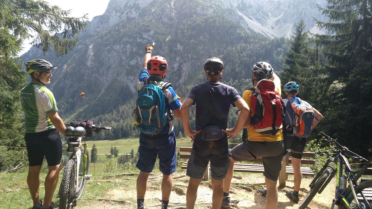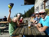 Der beim Abstieg auf dem Weg liegende Feichtnkaser, offensichtlich ein Hotspot der örtlichen E-Mountainbiker-Szene, wurde noch genutzt, um auf die gewonnen Eindrücke sowie den am Karlkopf stattgefundenen Jungfernflug von Franz’ Drohne anzustoßen.