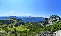 Kesselwand, Soinwand und Lacherspitz liegen im Schatten des viel besuchten Wendelstein. Vom Parkplatz unteres Sudelfeld führte uns der Weg an der Lacheralm vorbei und über die Peterbaueralm, die zu den Wendelsteinalmen gehört, bis zum Fuße der Wendelsteinfelswand, die imposant vor uns thronte. Von hier kommt man zur Scharte zwischen Kesselwand und Lacherspitz, die uns schon den ersten schönen Ausblick auf Wildalpjoch, Soinalm, Soinsee und das Chiemgauer Seenland gewährte. Auf dem ersten steinigen Gipfelchen standen wir direkt gegenüber dem zum Greifen nahen Wendelstein mit seinem Observatorium, der Kapelle und den Tunnels der Zahnradbahn, fernab dem ganzen Trubel. Unsere Gipfelrast mit Brotzeit verbrachten wir dann auf der Soinwand, die mehr Platz zum Verweilen bietet, bevor wir auf dem Rückweg noch unseren heutigen dritten Gipfel, die Lacherspitze, einsammelten. Durch das Lacherkar stiegen wir ab und trafen auf etwa halber Strecke wieder unseren Aufstiegsweg, auf dem wir zum Parkplatz gelangten. Dort kehrten wir zum Abschluss in eine bei Motorradfahrern beliebte Gaststätte ein.