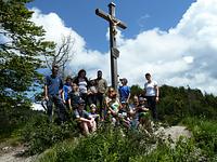 Zwei Familien nutzten das herrliche Wetter an diesem Tag, für eine gemütliche Bergwanderung aufs Chiemgauer Feichteck. Anfangs waren wir noch in Pullover oder Jacken gehüllt, das änderte sich schnell. Bei der Wagneralm (1050 m), für eine Einkehr noch zu früh, kamen die Jacken in den Rucksack. Nur schnell ein paar Bissen von der Marschverpflegung und weiter ging’s den Bergpfad in Serpentinen empor. Das letzte Stück zum Gipfel ging über die beweidete Almwiese. Oben angekommen, hatten wir den Gipfel für uns allein.