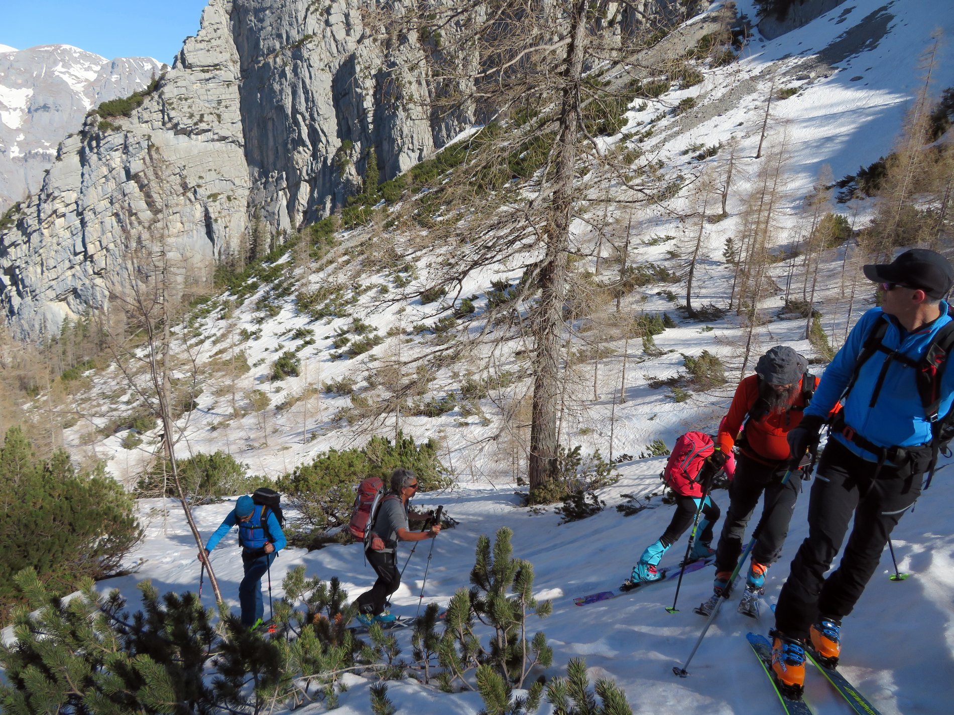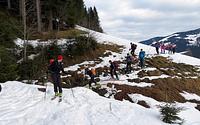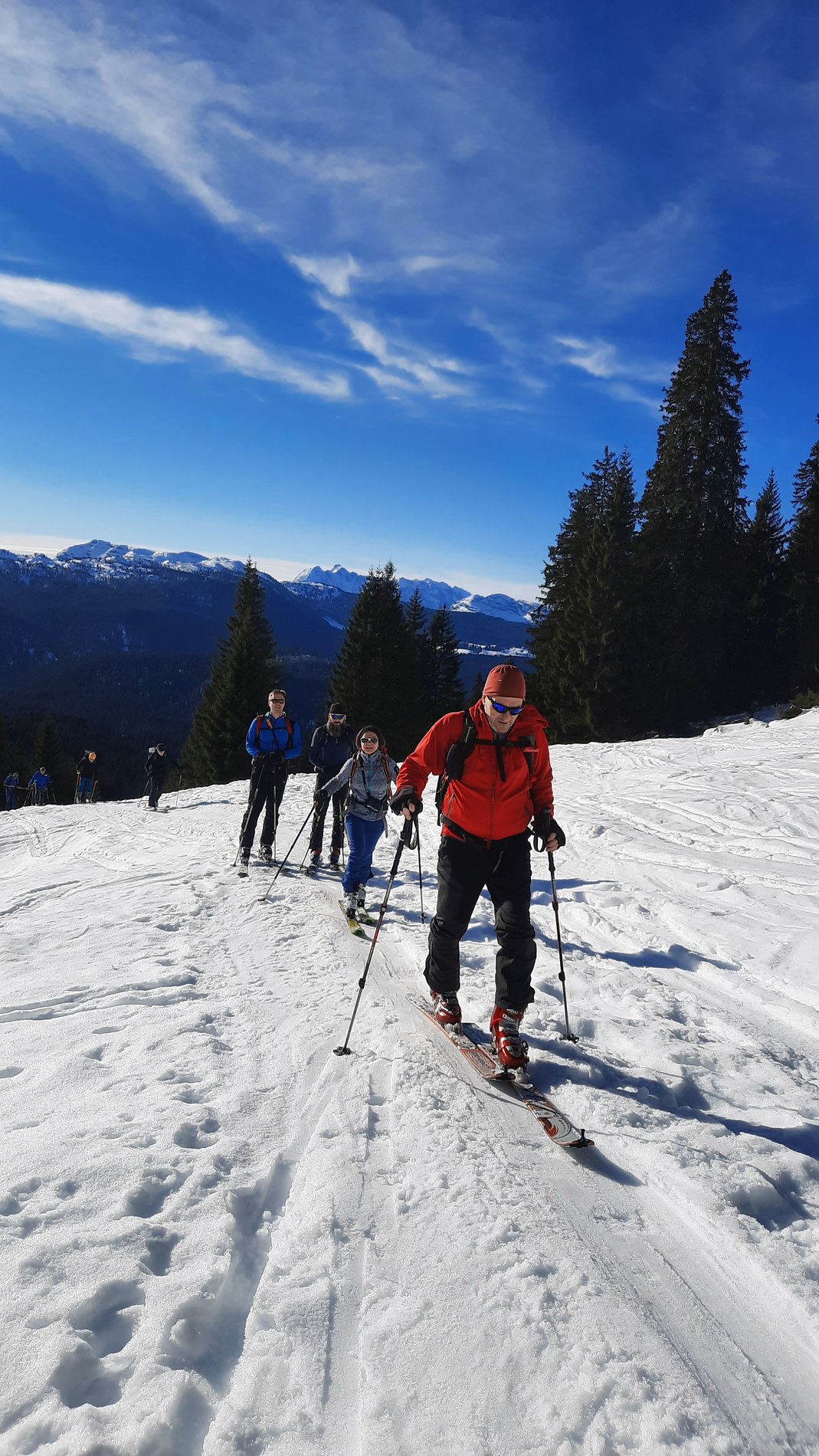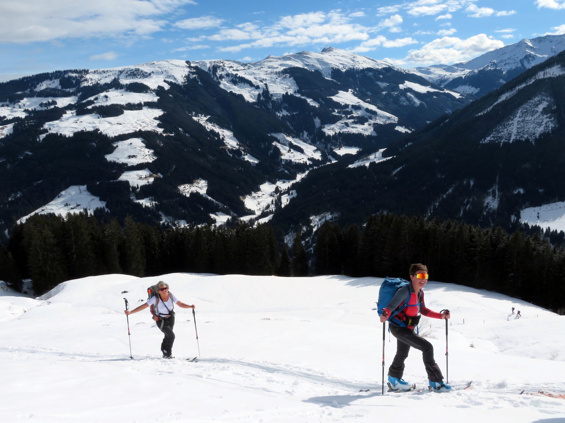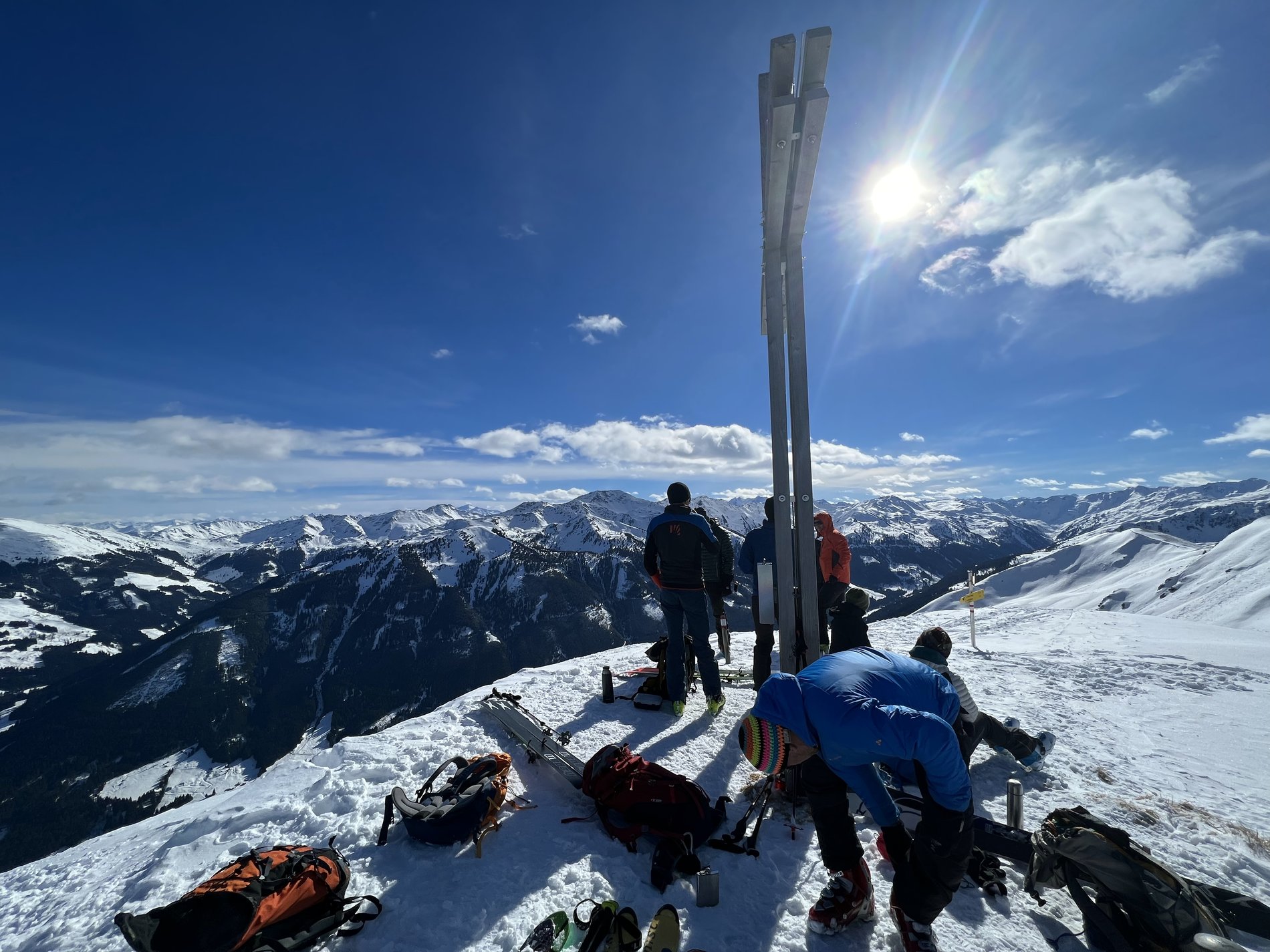 Wenn das Wetter passt, aber der Schnee zu wenig ist, bleibt nur eine Pistenskitour. So machten wir uns auf den Weg zum Dürnbachhorn. Vom Tourenskiparkplatz Seegatterl durch den Dürnbachgraben und über die Dürnbachalmen zum Gipfel. Das letzte Stück zum Gipfel und auch die Abfahrt durch die Latschen war eine Herausforderung bei der Schneelage. Bei einer gemütlichen Rast am Hang oberhalb der Bergstation genossen alle das Panorama. Die Abfahrt erfolgte bis zur Winkelmoosalm übers Gelände und dann auf der Skipiste.