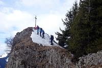 Unsere Tour starteten wir am Parklplatz in Regau, über verschneite Forstwege führte uns der Weg am Bichlersee entlang bis zum Rehleitenkopf. Den Gipfel, einen spitzen Felszahn, erreichten wir über einen schmalen Grat. Unser Weg führte uns dann zu den Astenhöfen, wo wir gemütlich eingekehrt sind. Wohl gestärkt machten wir uns wieder auf dem Rückweg nach Regau. Gut, dass wir dem Wetterbericht nicht geglaubt haben, der Regen hat uns den ganzen Tag über nicht gefunden.
