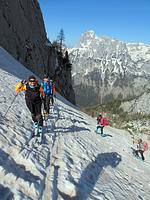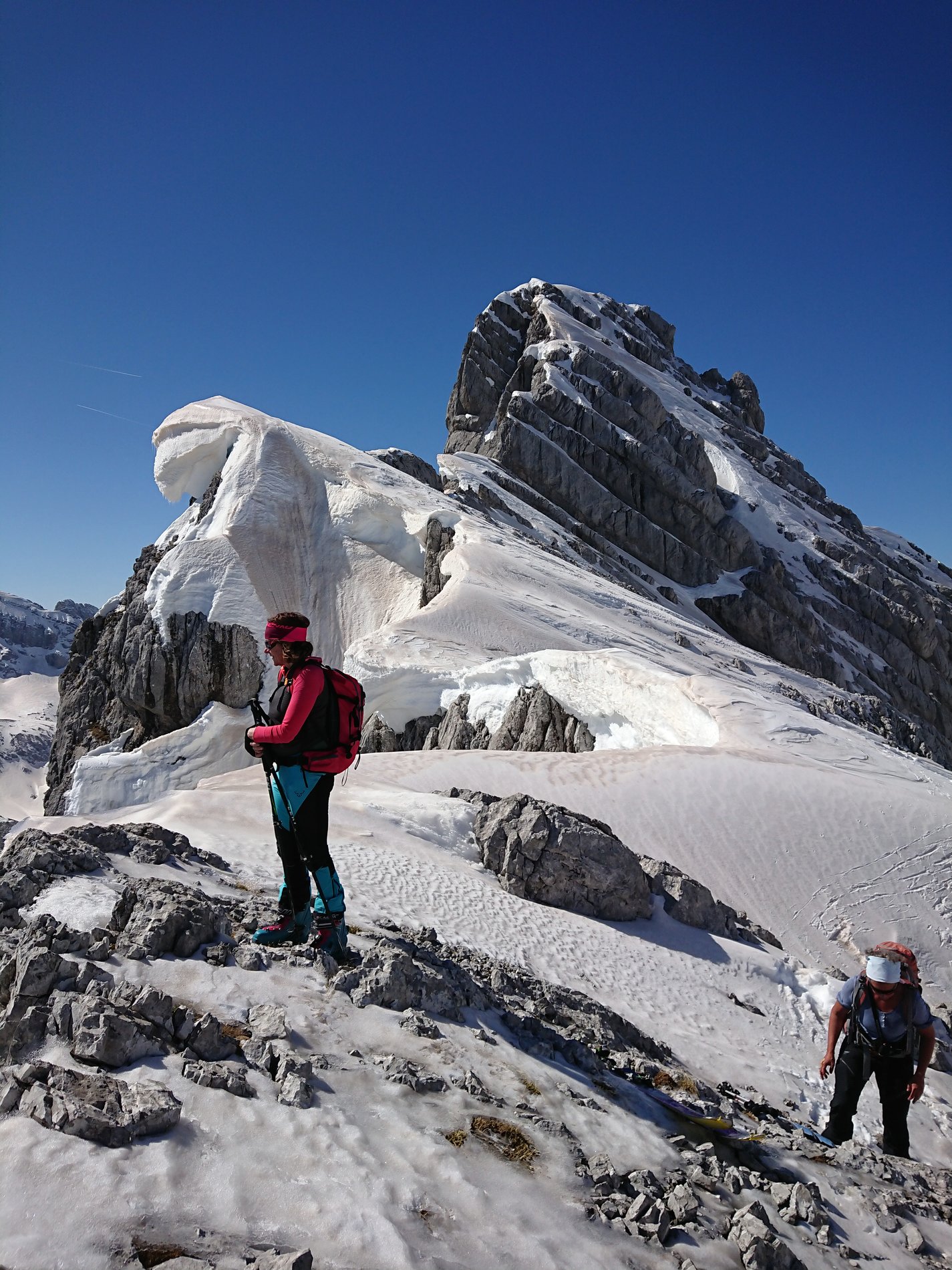 Dafür hat man, sobald die Wald- und Baumzone hinter einem liegt, freies hochalpines Gelände, steile Anstiege und eine lange steile Firnabfahrten. Nicht zu vergessen die beeindruckende Felskulisse und die grandiose Aussicht von der Ofentalscharte bis weit ins Steinerne Meer.
