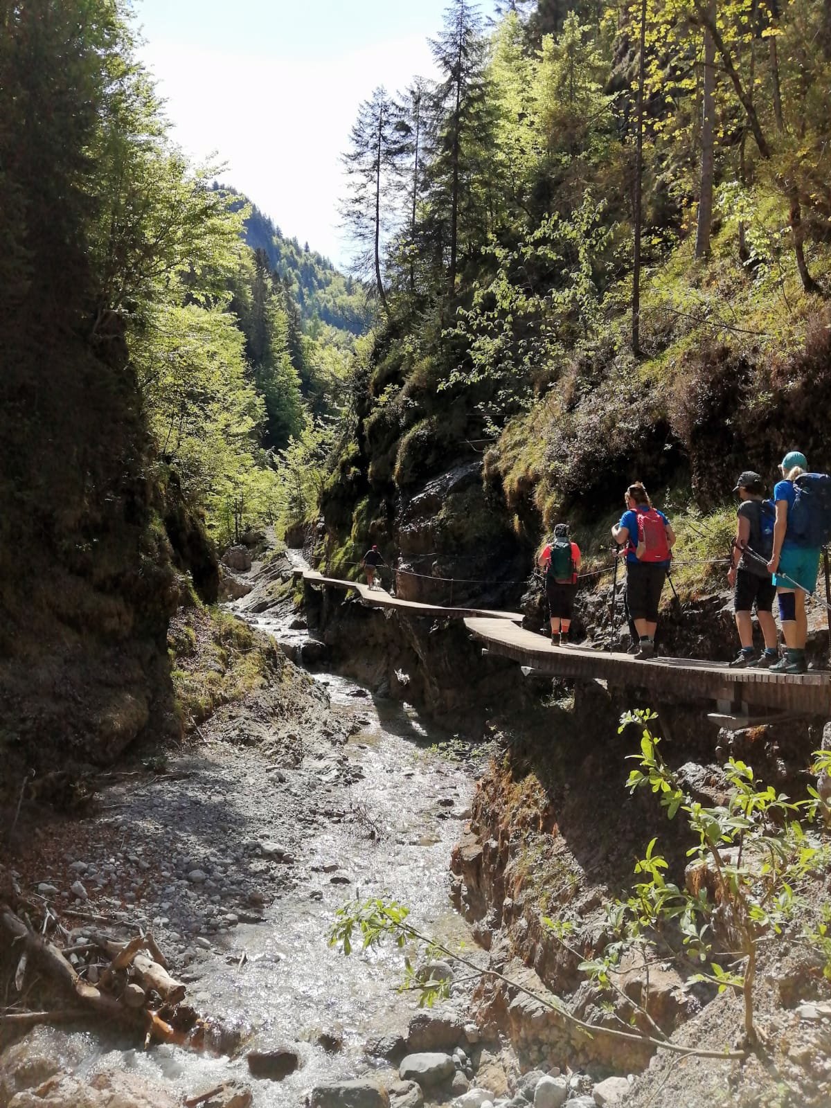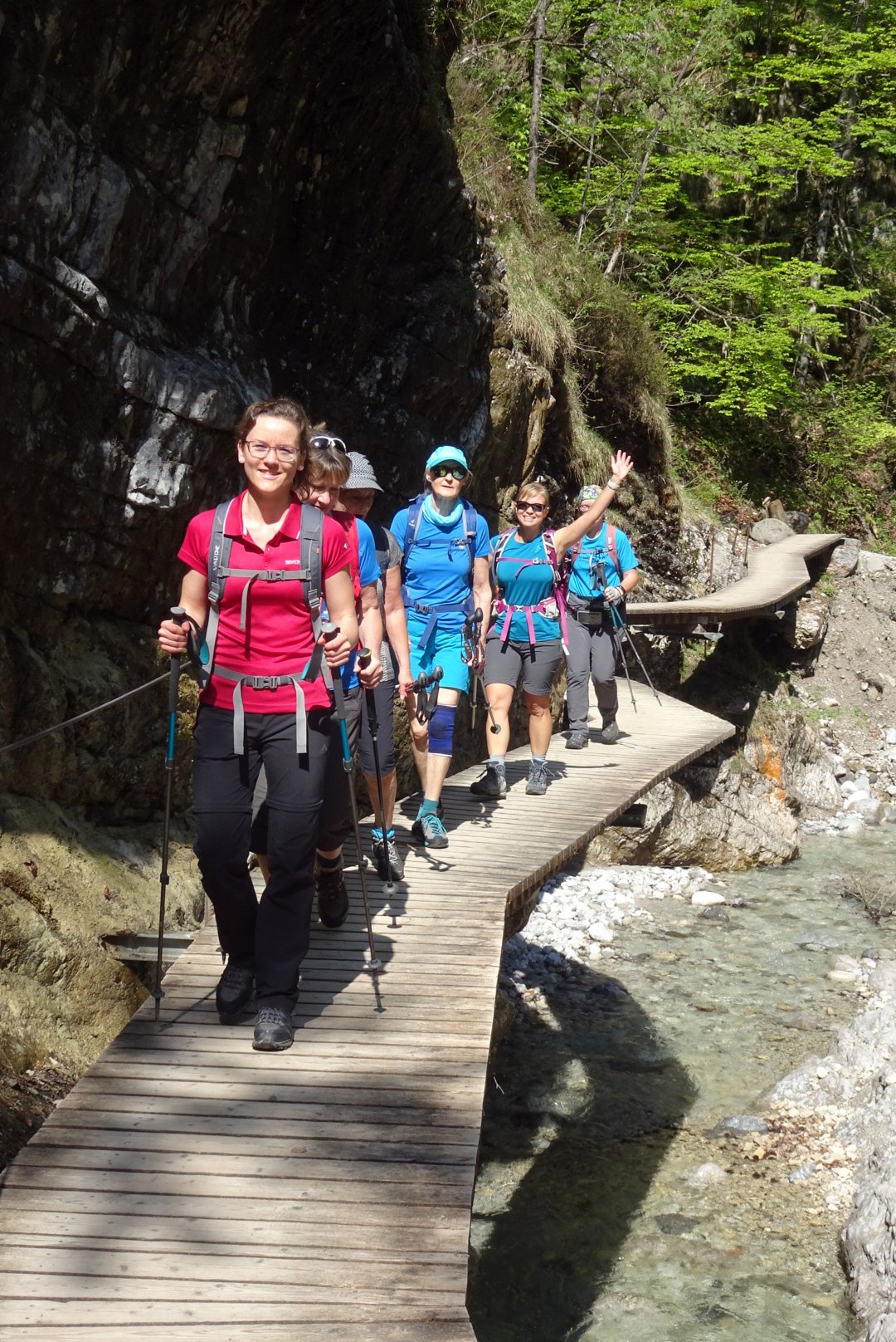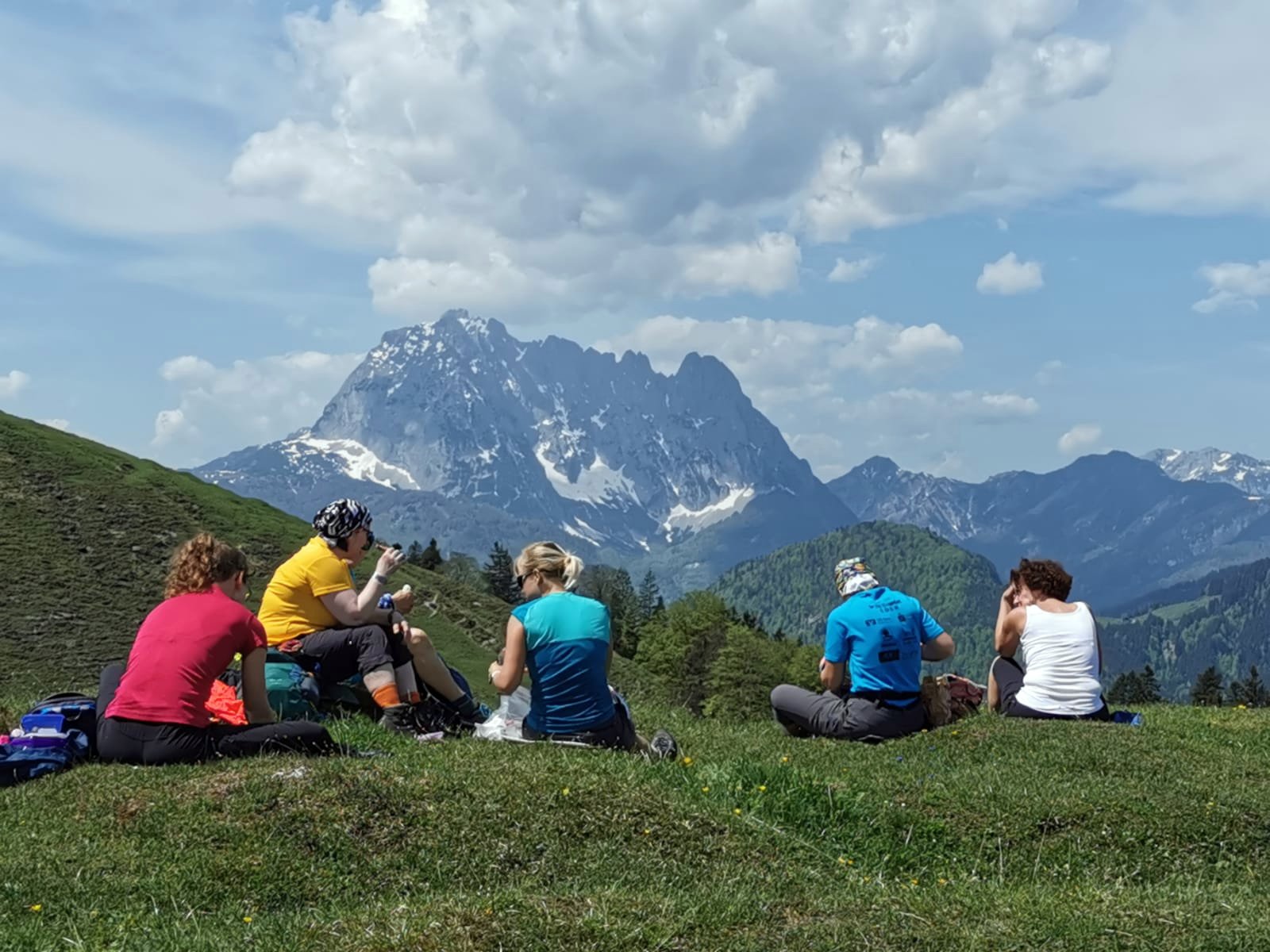 Unsere Spontanität wurde belohnt: Wegen dem schlechten Wetter am Sonntag haben wir die Tour auf Donnerstag verschoben und durften einen wunderschönen Bergtag genießen. Von Erpfendorf ging es über Schluchten, Hängebrücken, Wasserfälle und Sandbänke durch die Grießbachklamm. Nach einem kurzen Waldsteig waren wir schnell im freien Wiesen – und Almgelände. Im Aufstieg haben wir die Angerlalm noch rechts liegen gelassen und sind zum Jägerkreuz hochgezogen, welches zu einer gemütlichen Gipfelbrotzeit eingeladen hat. Nach einer Almenrunde zog es uns dann wieder xx runter zur Einkehr in die Angerlalm. Über das Huberkreuz und die Huberalm haben wir die Runde zurück nach Erpfendorf geschlossen. Ein guter Einstieg in die Wandersaison.