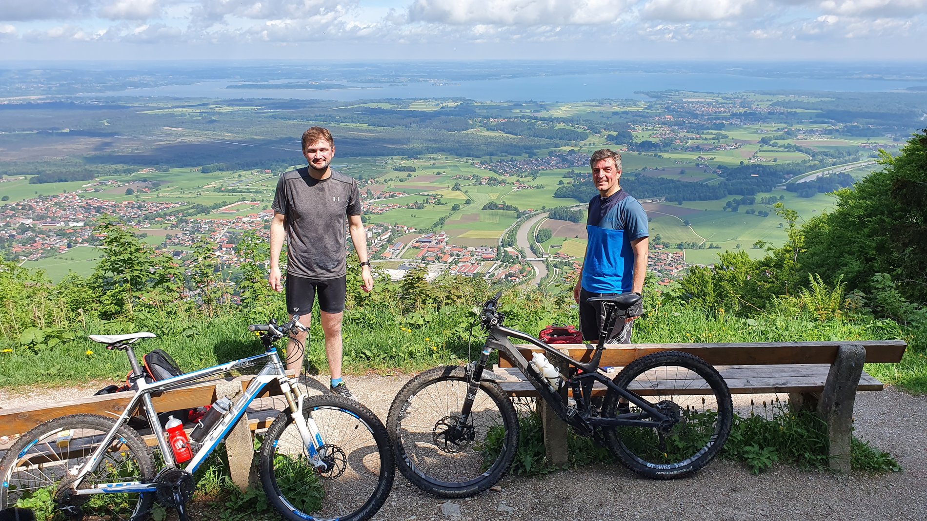 Am Hochgern waren wir schon öfters. Dieses mal umrundeten wir den Berg auf der „klassischen Runde“. Von Marquartstein fuhren wir zuerst zur Schnappenkirche rauf, über Trails und Wegen, mit ein paar Schiebemeter, weiter über Staudacheralm, Vorderalm und Eschelmoos hinunter zur Urschlauer Achen. Nach kurzem Anstieg war die Röthelmoosalm, wo es sich bei Brotzeit und Kaffee gut aushielten ließ, erreicht. Der Rückweg begann mit wegen gefühlt einem Kilo Kaiserschmarrn im Magen teilweise anstrengender Auffahrt zur Jochbergalm. Von hier aus ging’s nur noch bergab, teils über Wanderwege, teils über die Forstautobahn, bis zurück zum Startpunkt.