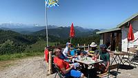 Am dritten Tag ging es an die Königsetappe über die Achselköpfe Richtung Brauneck und zurück über die Almen und den Beigenstein. Unser Dank gilt dem Bauern von der Vorderen Scharnitzalm, an der wir uns noch mit einer kühlen Halbe stärken durften.