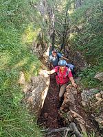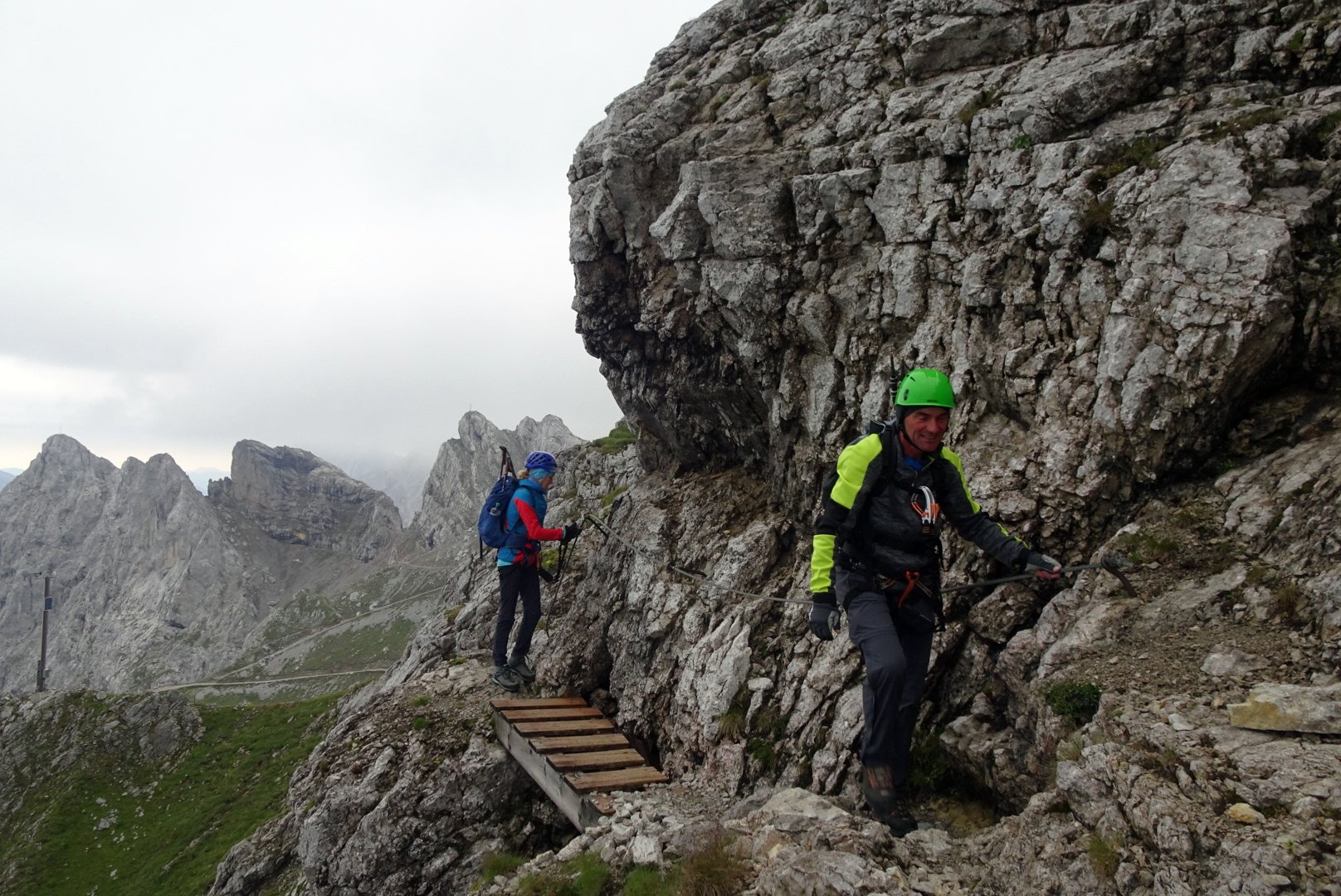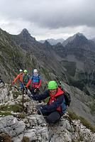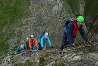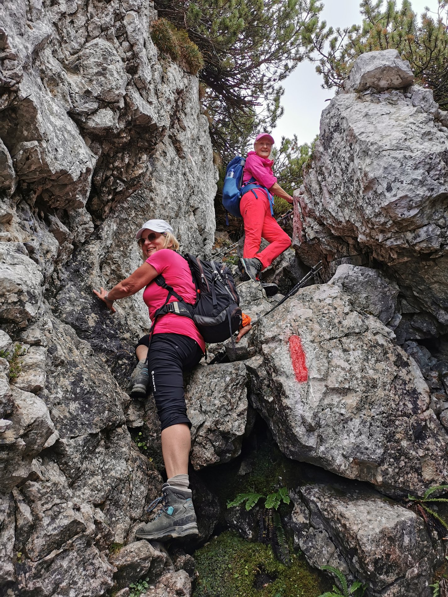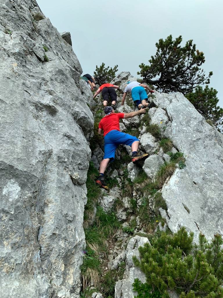 Auch am zweiten Tag hat der Wettergott es wieder gut mit uns gemeint. Während es auf der Benewand geschüttet hat, haben wir die Regenkleidung umsonst angezogen. An diesem Tag haben wir den Rabenkopf über interessante Steige überschritten. Kaum waren wir zurück an der Hütte, hat es aus Eimern gegossen.
