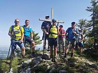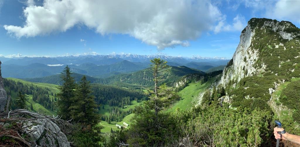 Unser Weg führte uns über die Hofalm zum ersten Gipfel des Tages, dem Hammerstein. Immer dem Kamm entlang stellte sich bald eine Felswand in den Weg, mit Hilfe einer Seilversicherung haben wir die markante Felswand bewältigt. Der Weiterweg führte uns nun am Grat entlang über das Zellerhorn und die Jägerwand zum Hauptgipfel unserer Rundtour, der Zellerwand. Vom Gipfel ging es weglos Richtung Ellendalm. Am Parkplatz in Hohenauschau schloss sich dann unsere Runde. In einem gemütlichen Biergarten in Hohenaschau ließen wir den herrlichen Sommertag ausklingen.