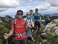 Nach zwei Stunden Marsch erreichten wir den ersten Gipfel, die Wetterfahne überm Kaisertal. Über leichtes Gelände aber teilweise schmierigen Passagen erreichten wir dann den Gipfel der Rudersburg. Der Abstieg übers Wandberghaus ergab für die 18 Wanderer eine gelungene Sommereingangstour.