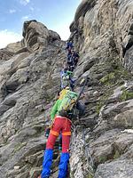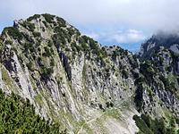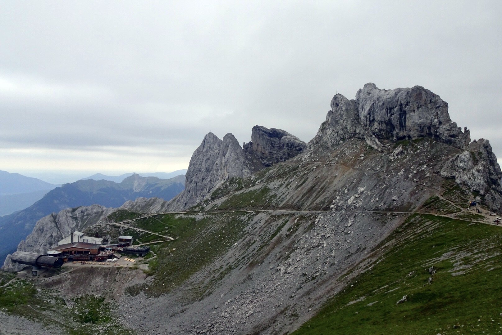 An diesem Wochenende hätte es auf den Hochkönig gehen sollen, aber bei Regen am Samstag war das kein gutes Ziel. Auf der Suche nach einem interessanten Ziel ist die Wahl auf den Mittenwalder Höhenweg gefallen. Mit der Karwendelbahn ging es mit der ersten Gondel an diesem Tag auf knapp 2400 m. Während Lorenz und Walter noch schnell den Klettersteig zur Westlichen Karwendelspitze mitgenommen haben, sind die restlichen Teilnehmer direkt in den luftigen und aussichtsreichen Höhenweg eingestiegen. In einem auf und ab ging es stundenlang am Grat entlang.