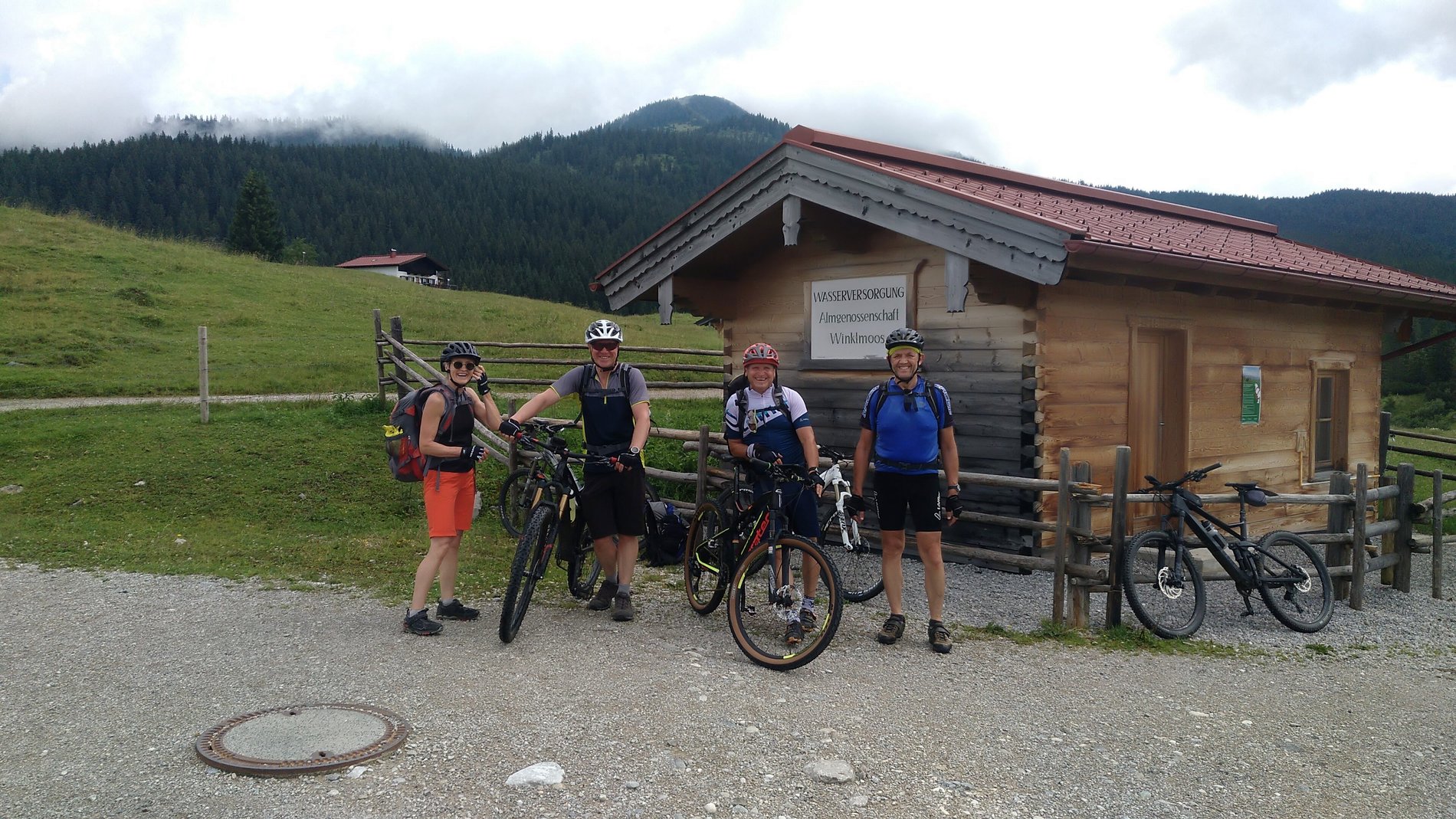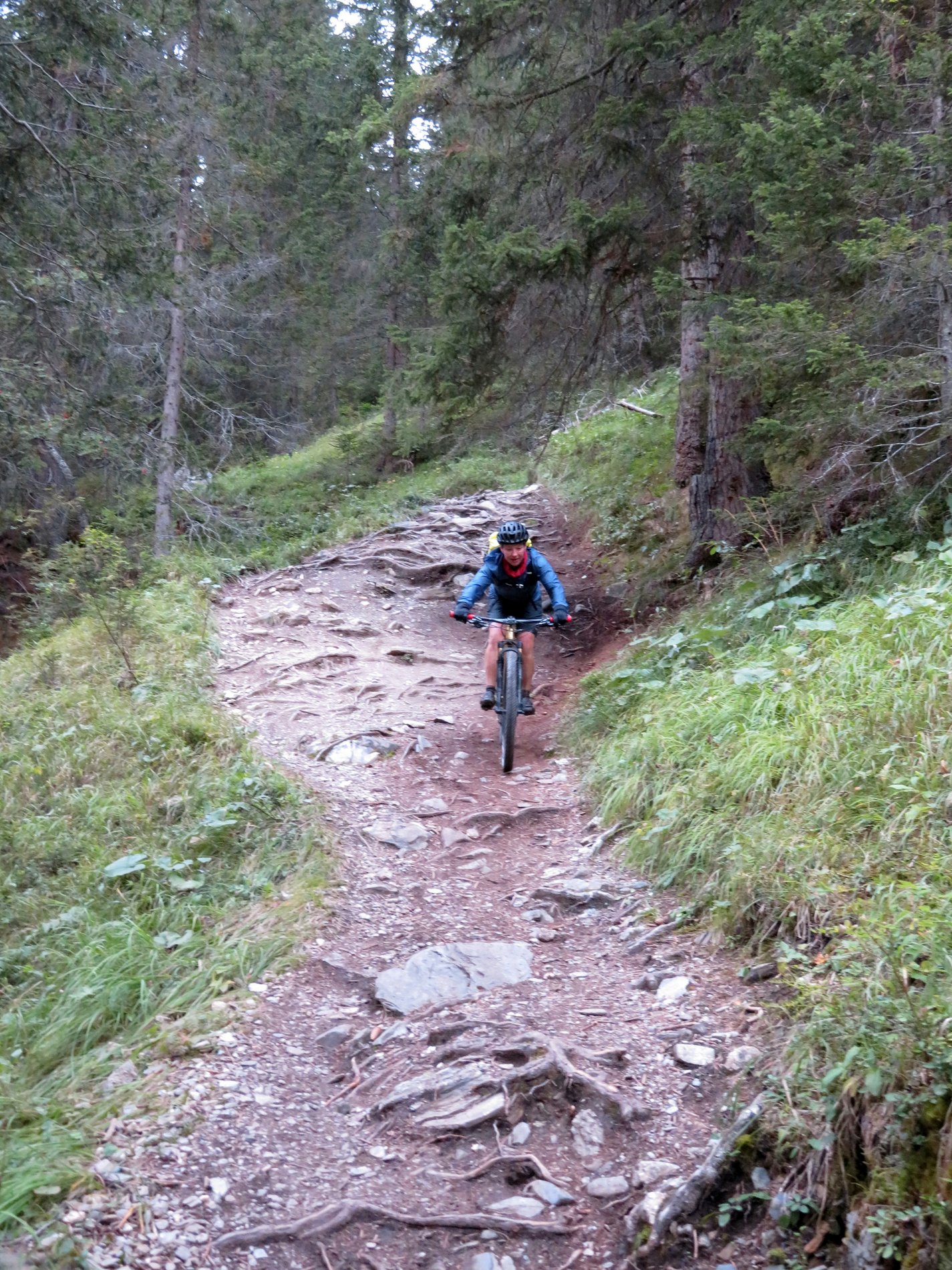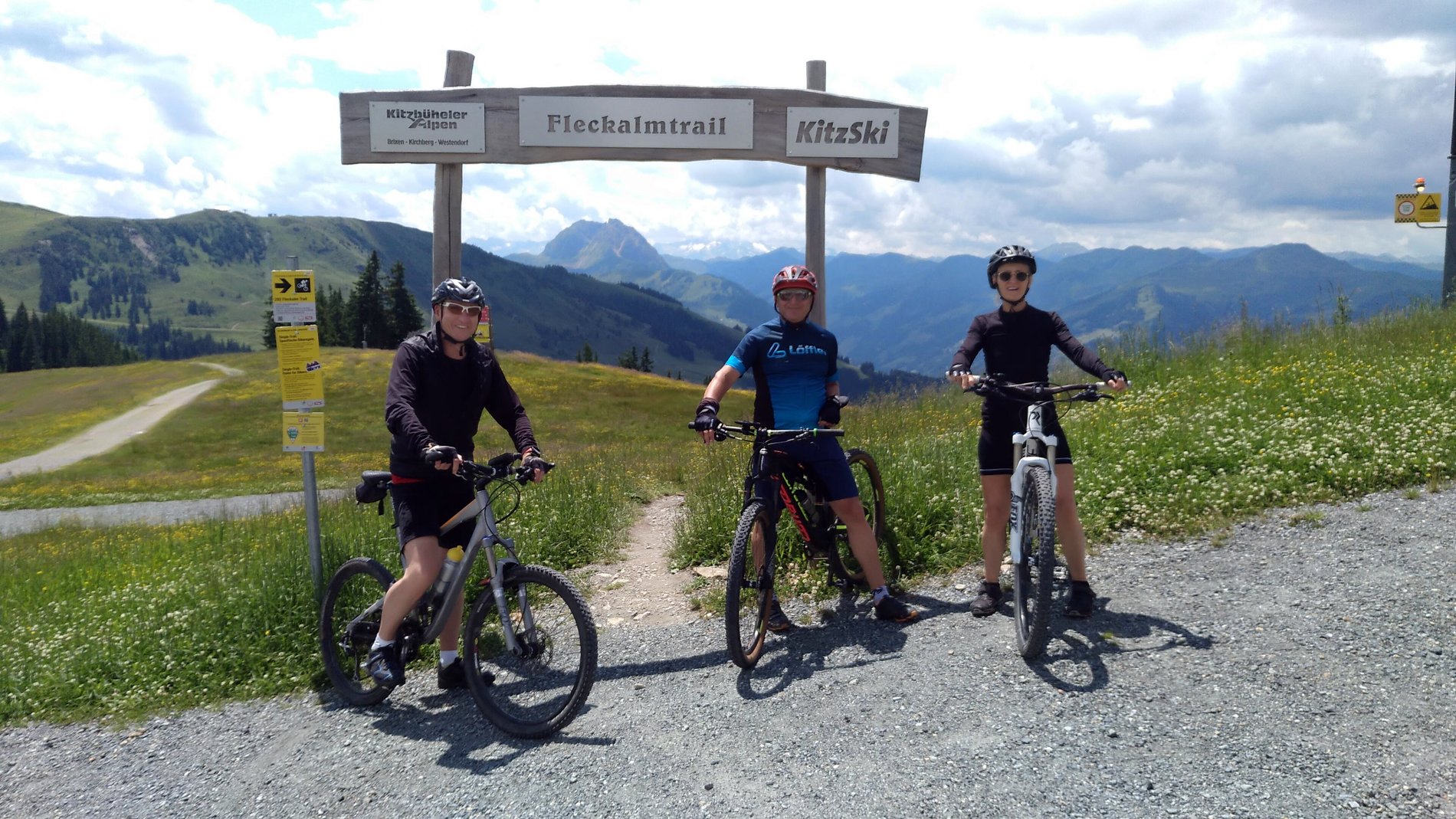 Von dort aus ging es weiter durch Pletzergraben zum Kitzbüheler Horn, Kitzbühel und Schwarzsee zur Fleckalmbahn. Mit Liftunterstützung hoch, um dann den Fleckalmtrail abwärts zu genießen. Von der Ehrenbachhöhe ging es Richtung Aschau/Tirol zur Oberlandhütte.