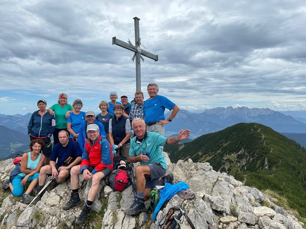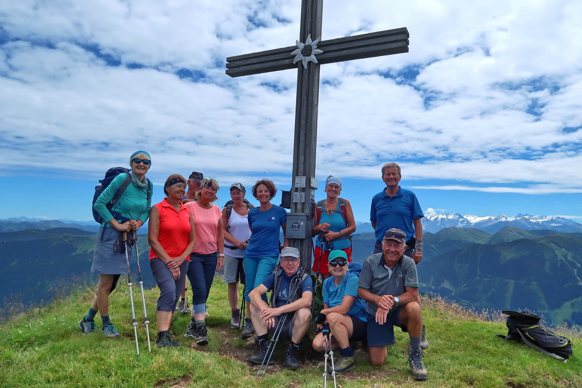 Die Parkplatzsituation auf der Spielbergalm gestaltete sich schwierig, erst nach zäheren Verhandlungen konnten wir die Tour starten. Der südseitige Anstieg über freies Almgelände und leichten Felspassagen im Gipfelbereich brachte uns in 2½ Stunden zum Gipfel. Das Panorama mit Loferer und Leoganger Steinbergen im Nahbereich ließen den morgendlichen Stress am Parkplatz rasch vergessen. Nach dem Abstieg auf dem gleichen Weg zurück ließ die Gruppe auf der Terasse der Alm bei bester Stimmung die Tour ausklingen.