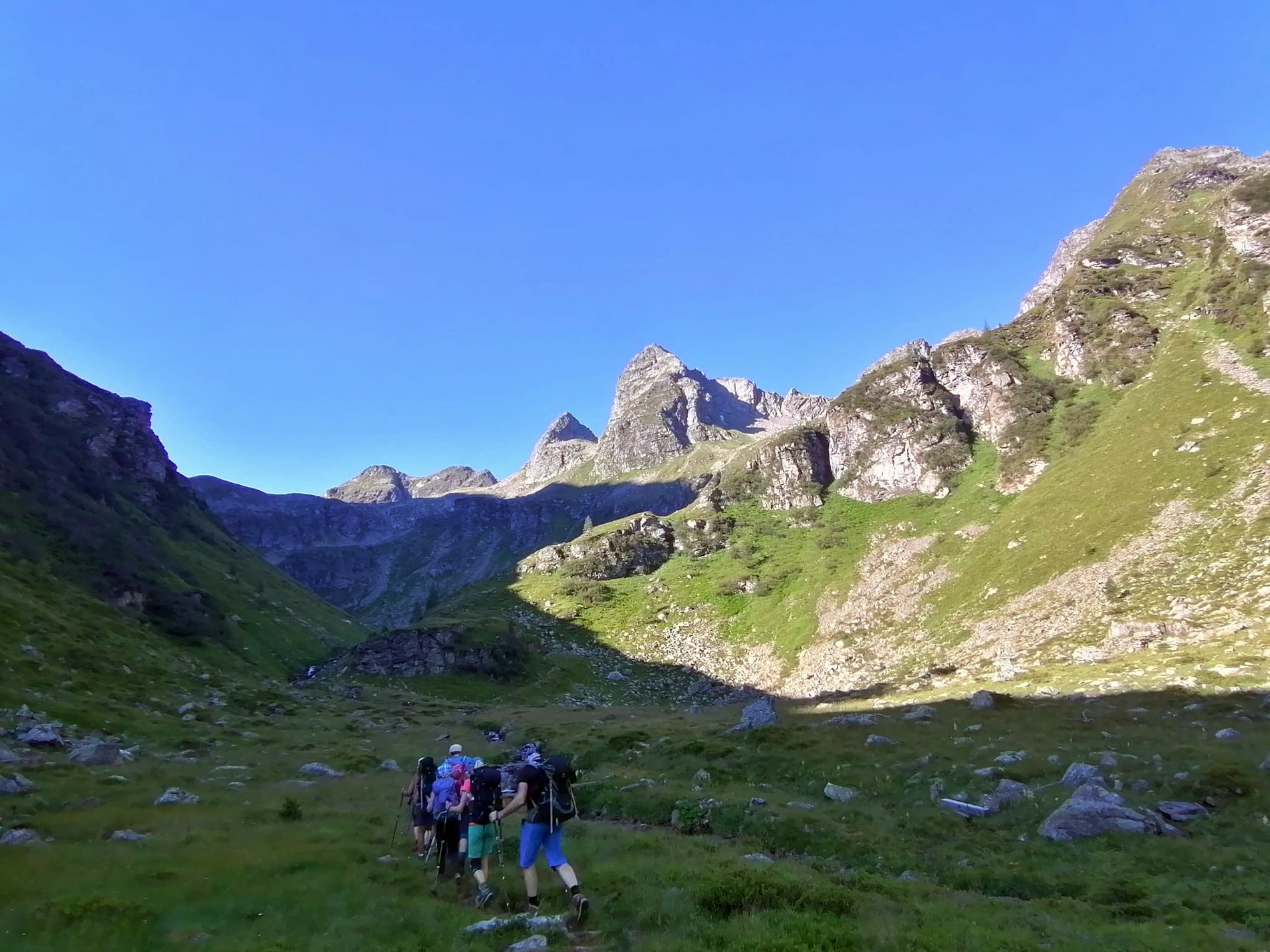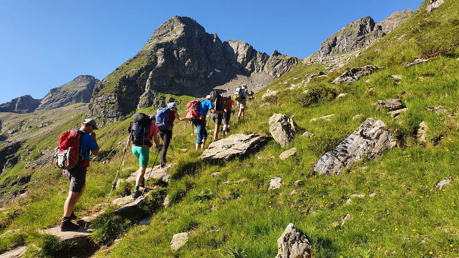 Die Dreitagestour begann mit einer rumpligen Fahrt per Hüttentaxi zur Wetterkreuzhütte. Von dort aus machten wir uns zur Mittagseinkehr auf zur idyllisch gelegenen Zupalseehütte, bevor es zur Lasörlinghütte ging, wobei ein Abstecher zur Merschenhöhe (Grasbuckel) eingelegt wurde. Petrus war uns gewogen, sodass es erst kurz vor Erreichen der Hütte, wo wir die Nacht verbrachten und uns für den anstehenden Aufstieg stärkten, zu tröpfeln begann.