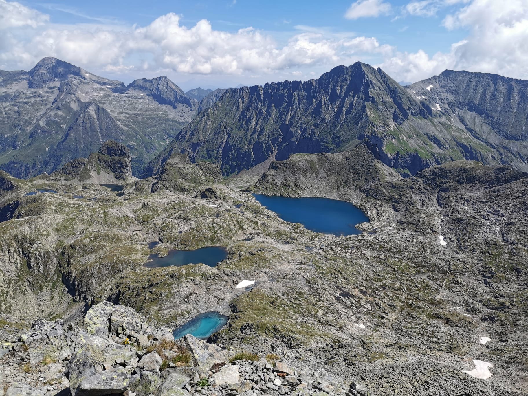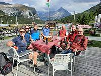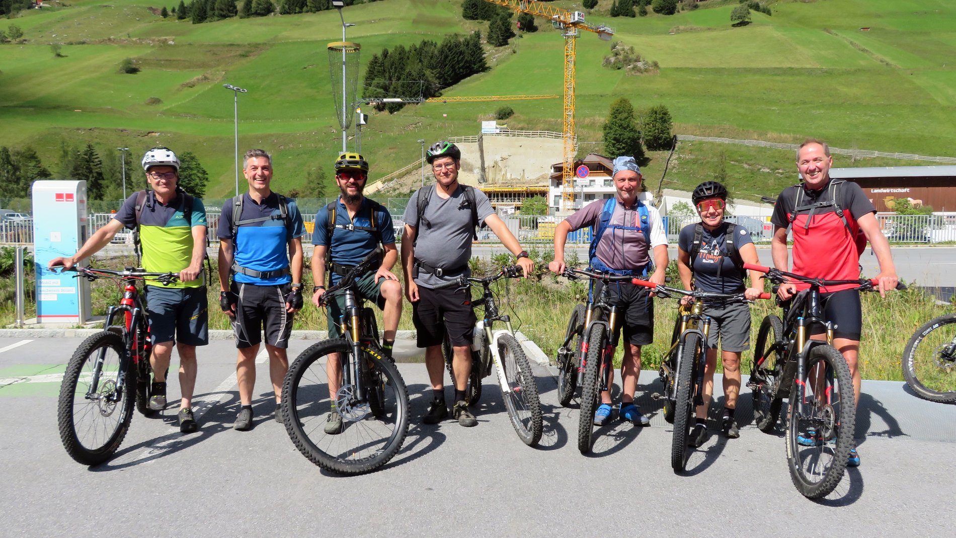 Schon die Anreise war eine kleine Herausforderung: AV-Bus/Zug/Taxi bis nach Ischgl. Von hier aus starteten wir zu siebt auf unsere Alpenüberquerung zum Gardasee.