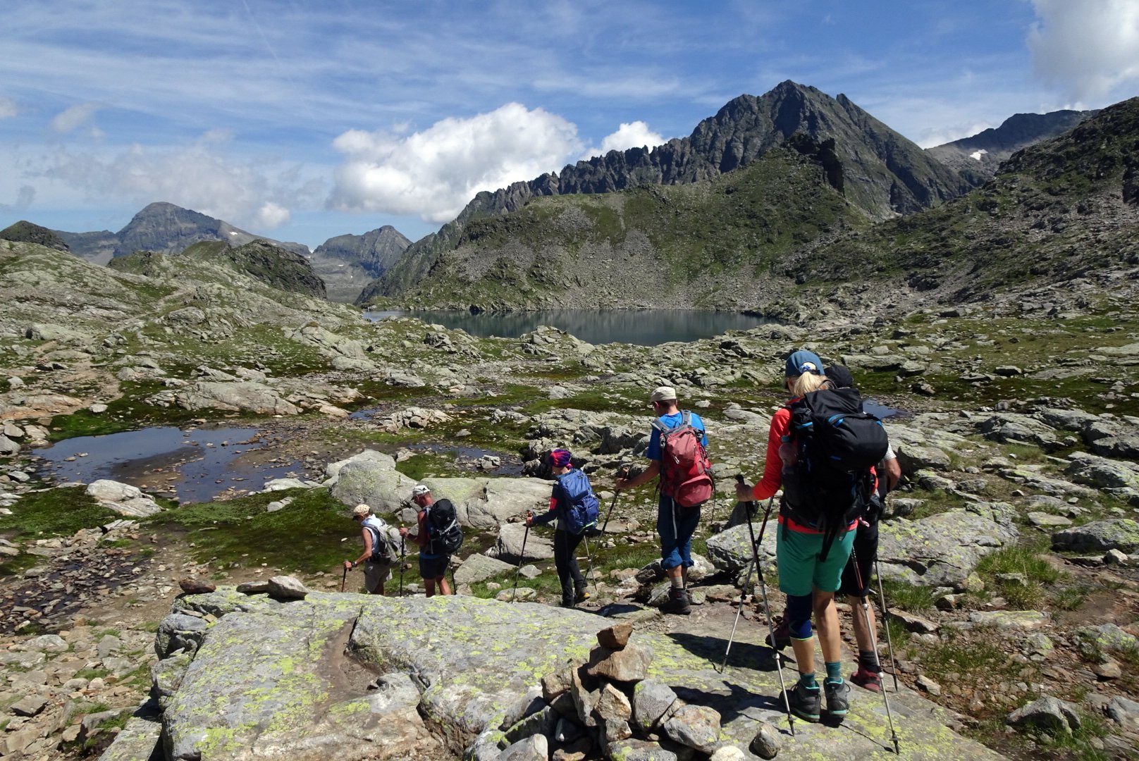 Vom Wanderparkplatz Seegatterl aus starteten fünf Teilnehmer zur ersten Etappe über Winklmoosalm, Steinplatte, Richtung Brunnkopf, vorbei am Pillersee nach Fieberbrunn.